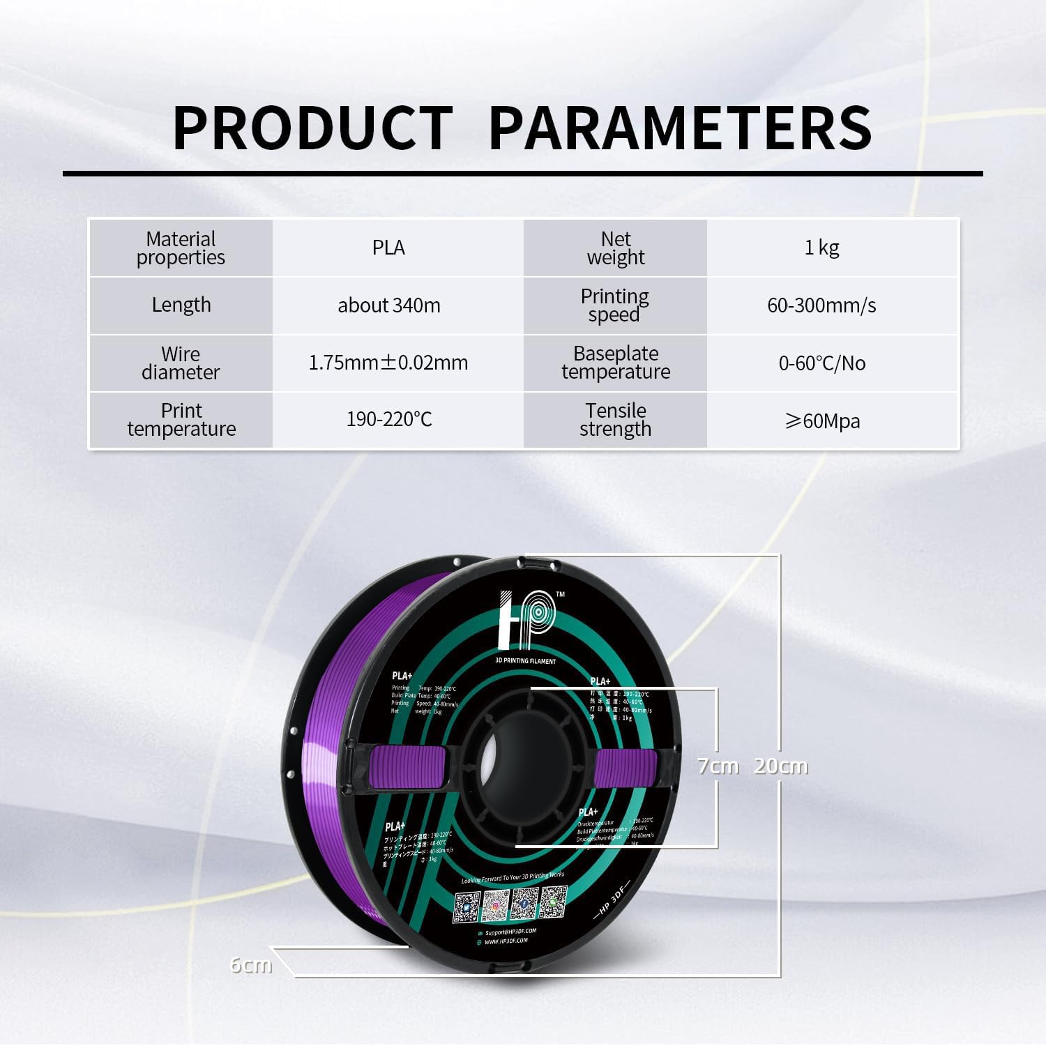 - 【Toughness Enhanced PLA Filaments】--- HP3DF silk filament made with 100% Pure USA PLA raw materials and healthy organic colour powders. Optimized printing quality and superb layer bonding meeting your demands for printing projects of functional parts with higher toughness.