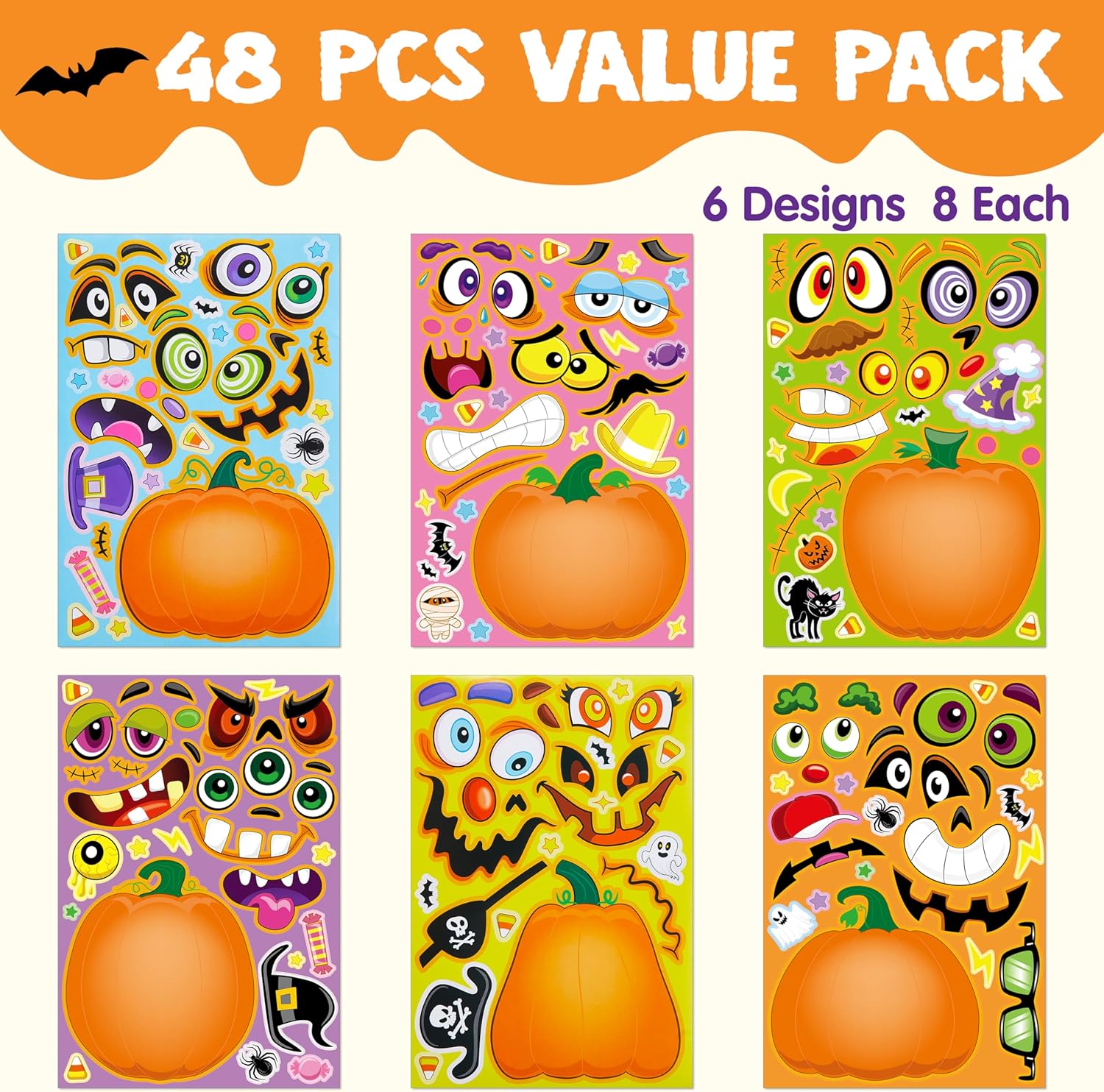 JOYIN 48 Pcs Halloween Pumpkin Stickers for Kids, Halloween Party Favor, Craft Party Supplies, Funny Sticker with Different Pumpkin Design, Classroom Activities Games Goodies Treat Gifts(Age 3+)