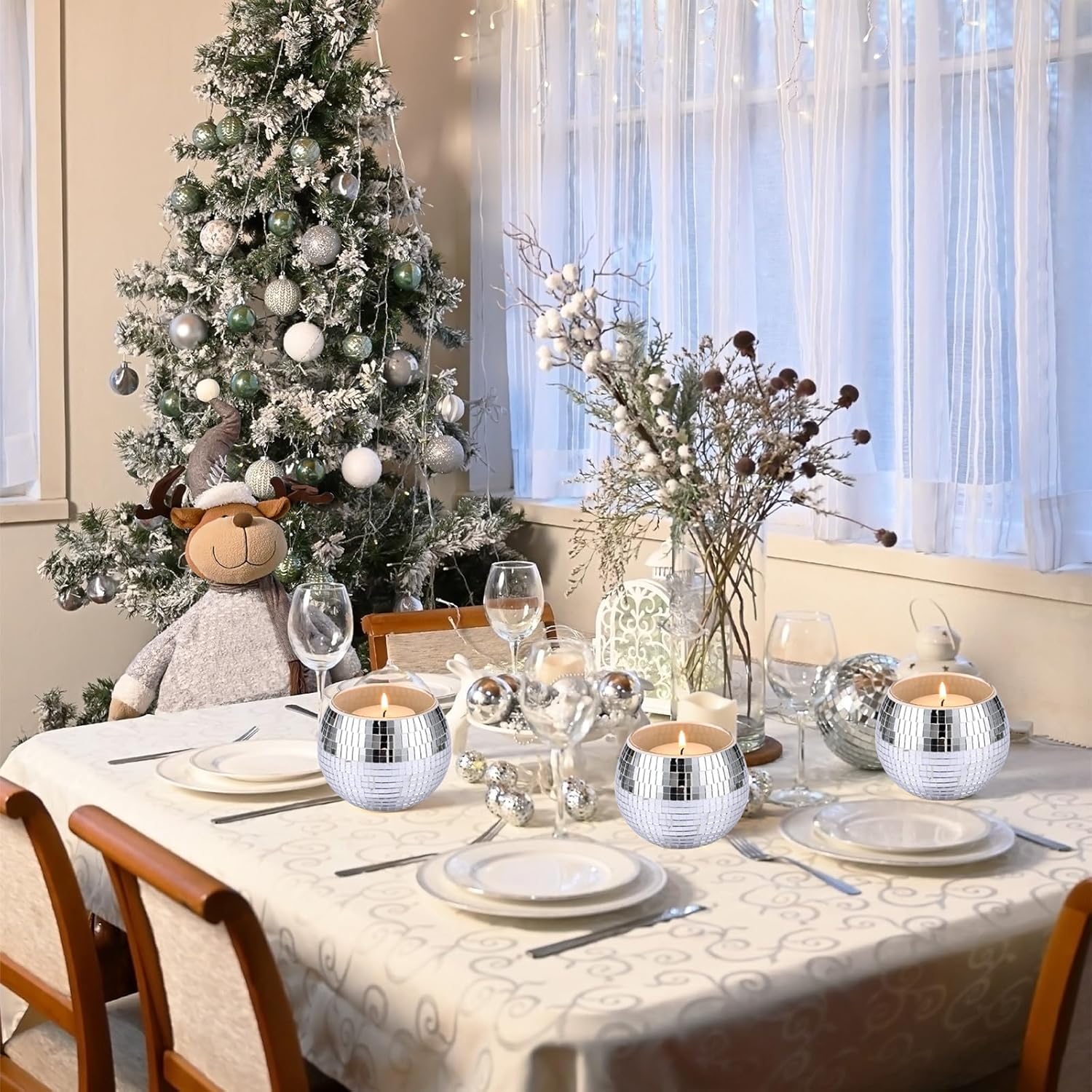 Jinei 12 Pcs Disco Vases Bulk Silver Mirror Disco Ball Flower Glass Ball Planter Candle Holder Glass Vase for Wedding Table Centerpieces Bedroom Office Birthday Decoration (3" X 4")
