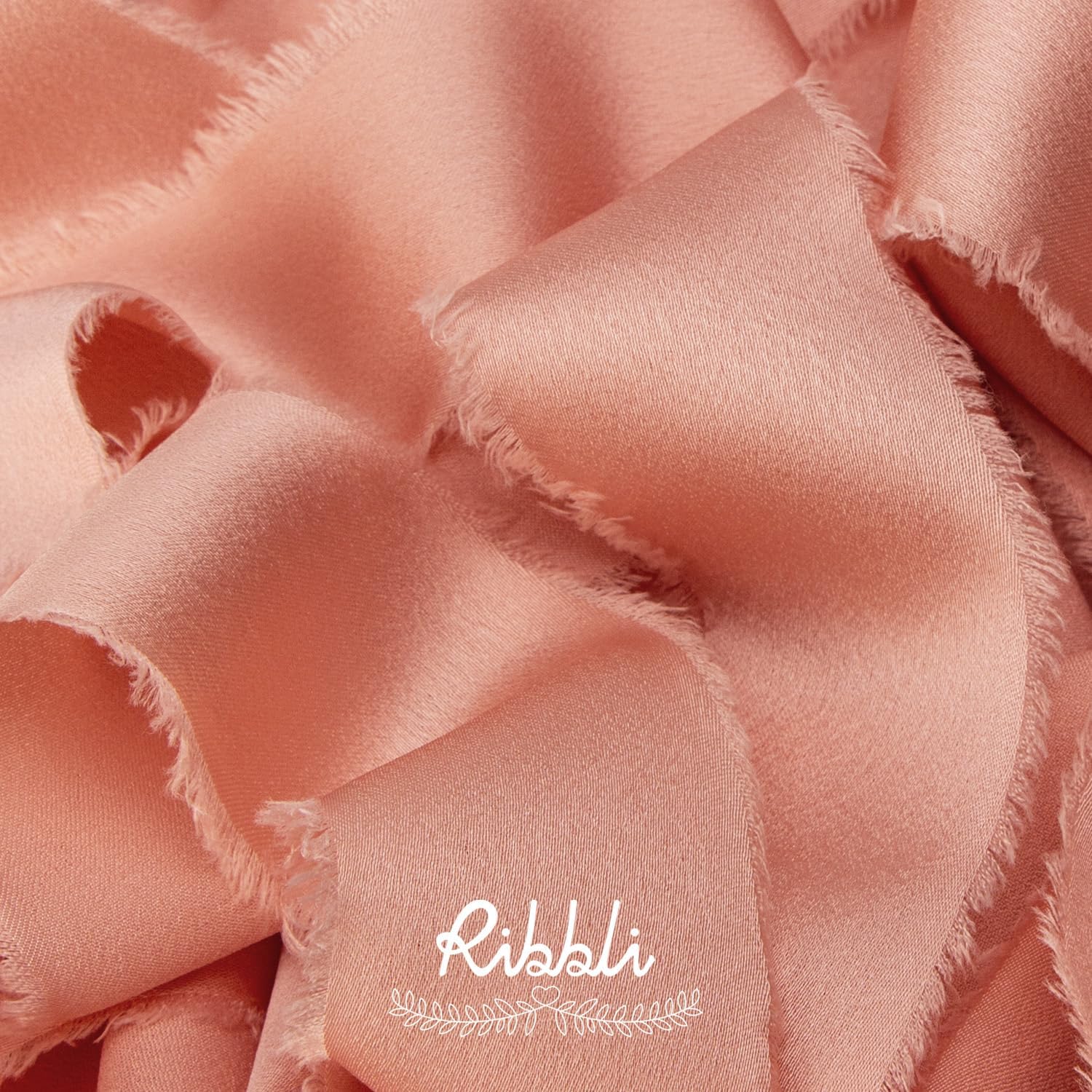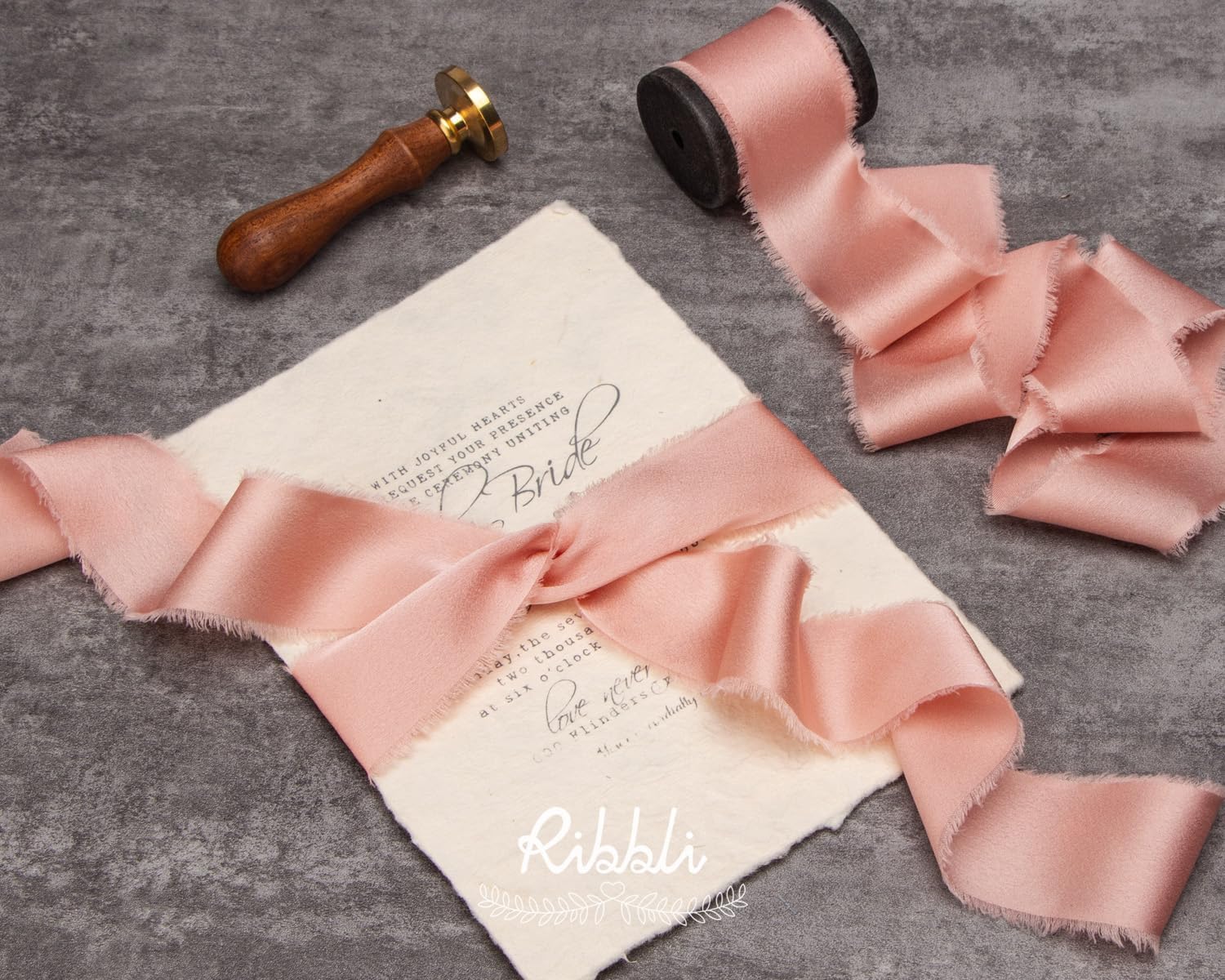 Ribbli Rose Gold Silk Satin Ribbon 1.5 Inch x 12 Yard Handmade Frayed Chiffon Ribbon with Wooden Spool for Gift Wrapping, Wedding Invitations, Bridal Bouquets, Home Decor