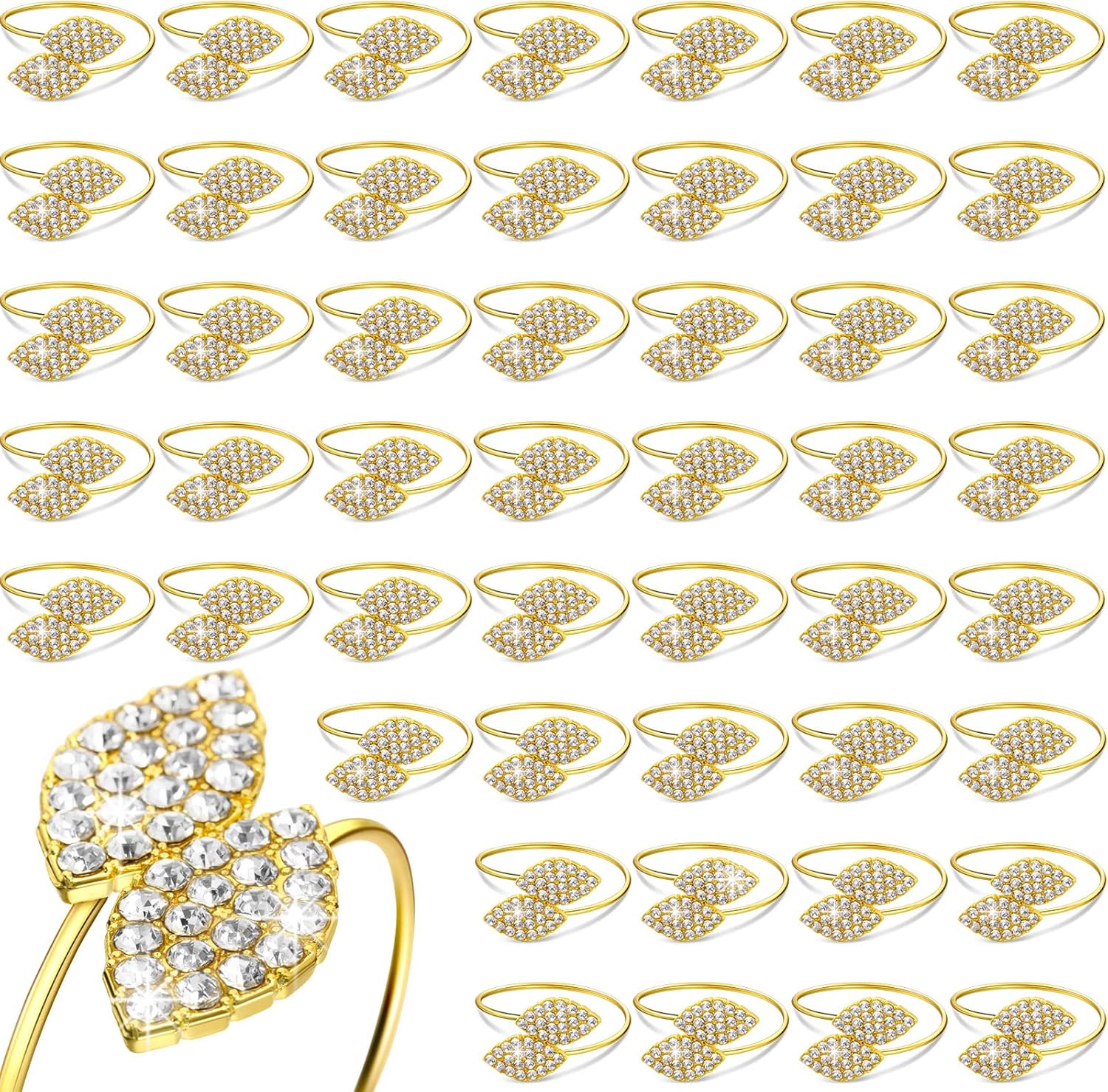 - You will get: set of 300 pieces metal napkin rings, design by shiny rhinestone double leaves, elegant plated add more gloss and sparkly, which makes for an elegant addition to the table setting