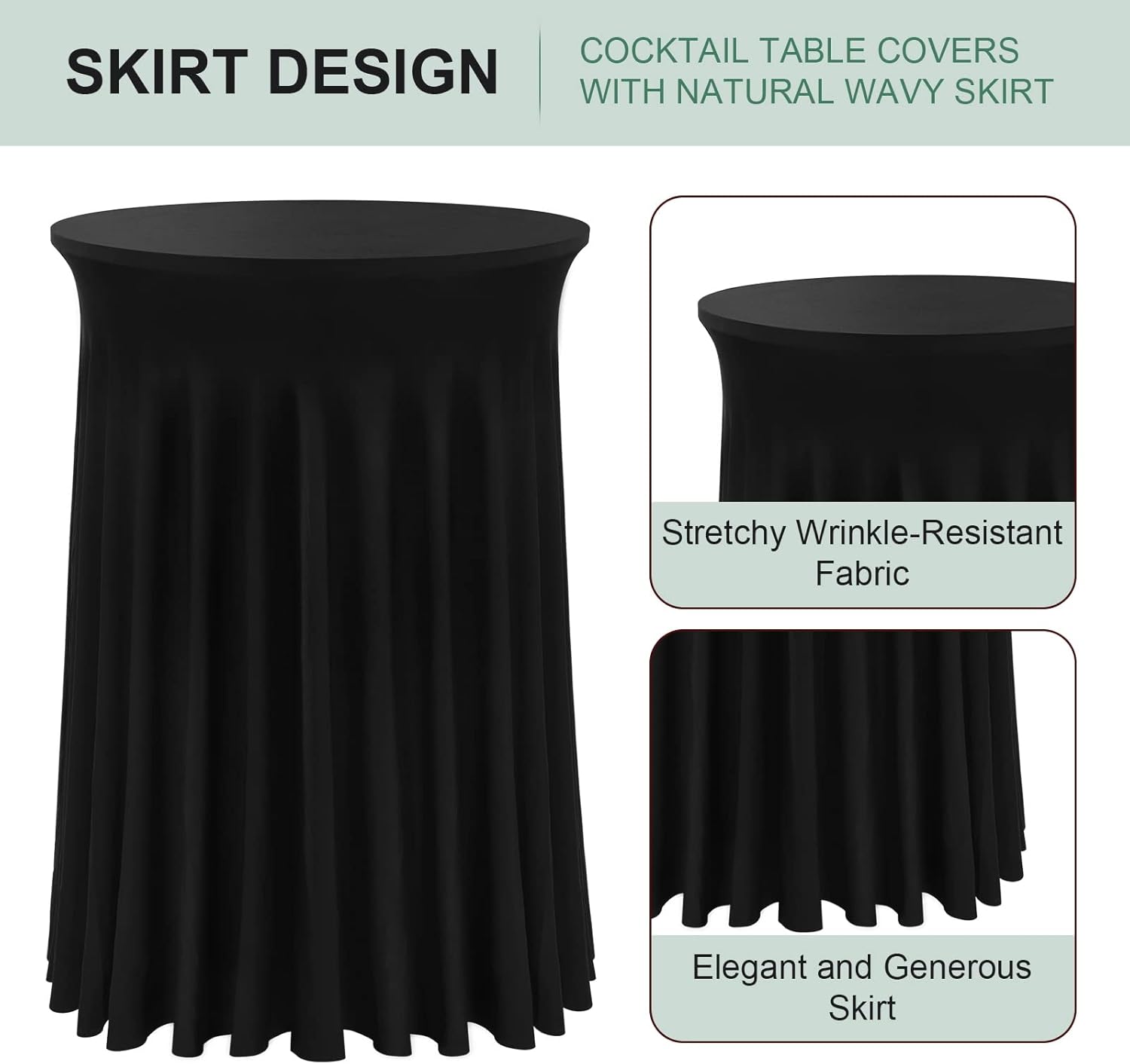 - Stretchy Wrinkle-Resistant Fabric - The table cover is made of silky smooth flexible wrinkle-resistant material, and it makes the table look neat and professional. The soft table skirt falls naturally, elegant, and generous