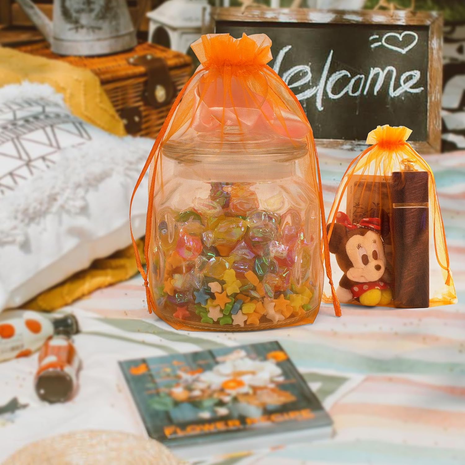 - SIZE&COLOR- Size: 6.5x9 Inch, Color: ORANGE, also available in other colors (Black, White, Purple, Pink). Package includes 100 pieces of orange organza bags, perfect for various occasions: Valentine, Christmas, Halloween, Wedding or Birthday, etc.