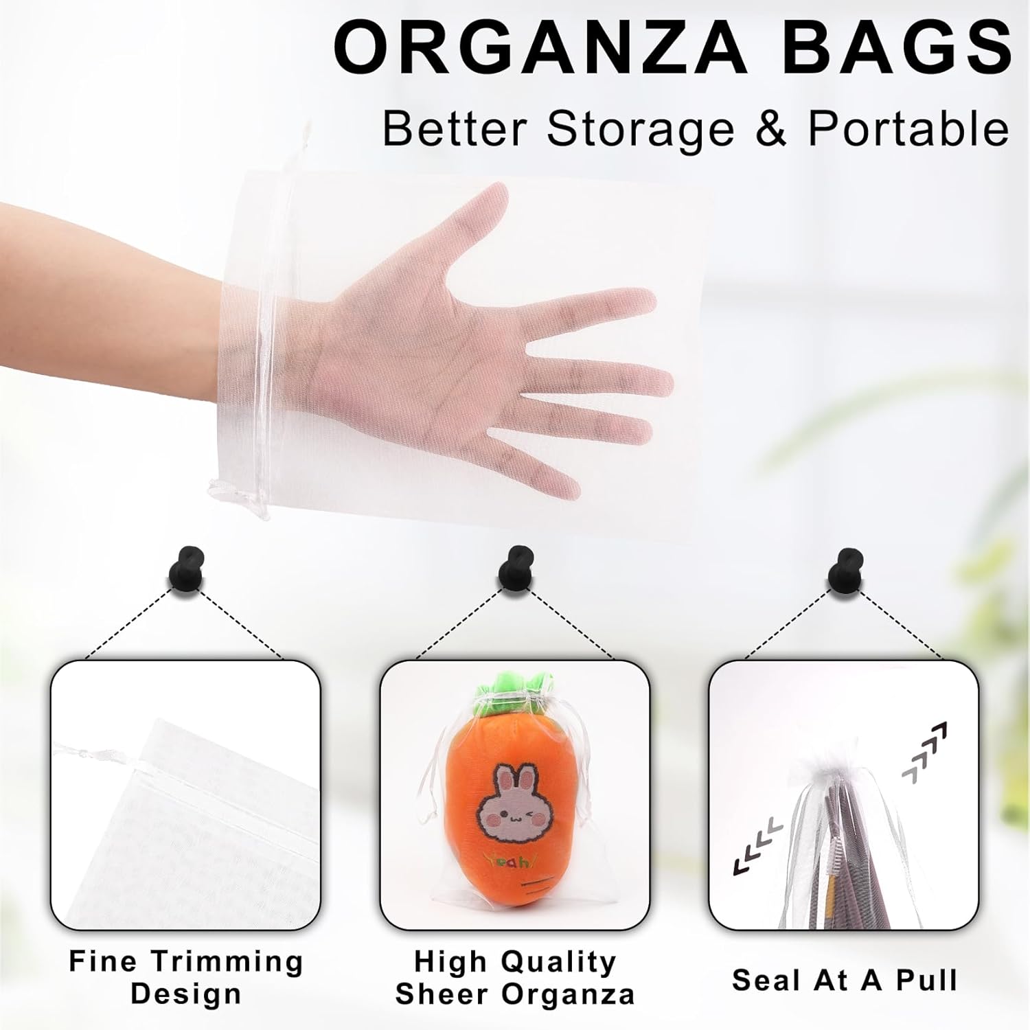 - Included Components : 100 Pcs White Organza Bags 6.5x9 Inch