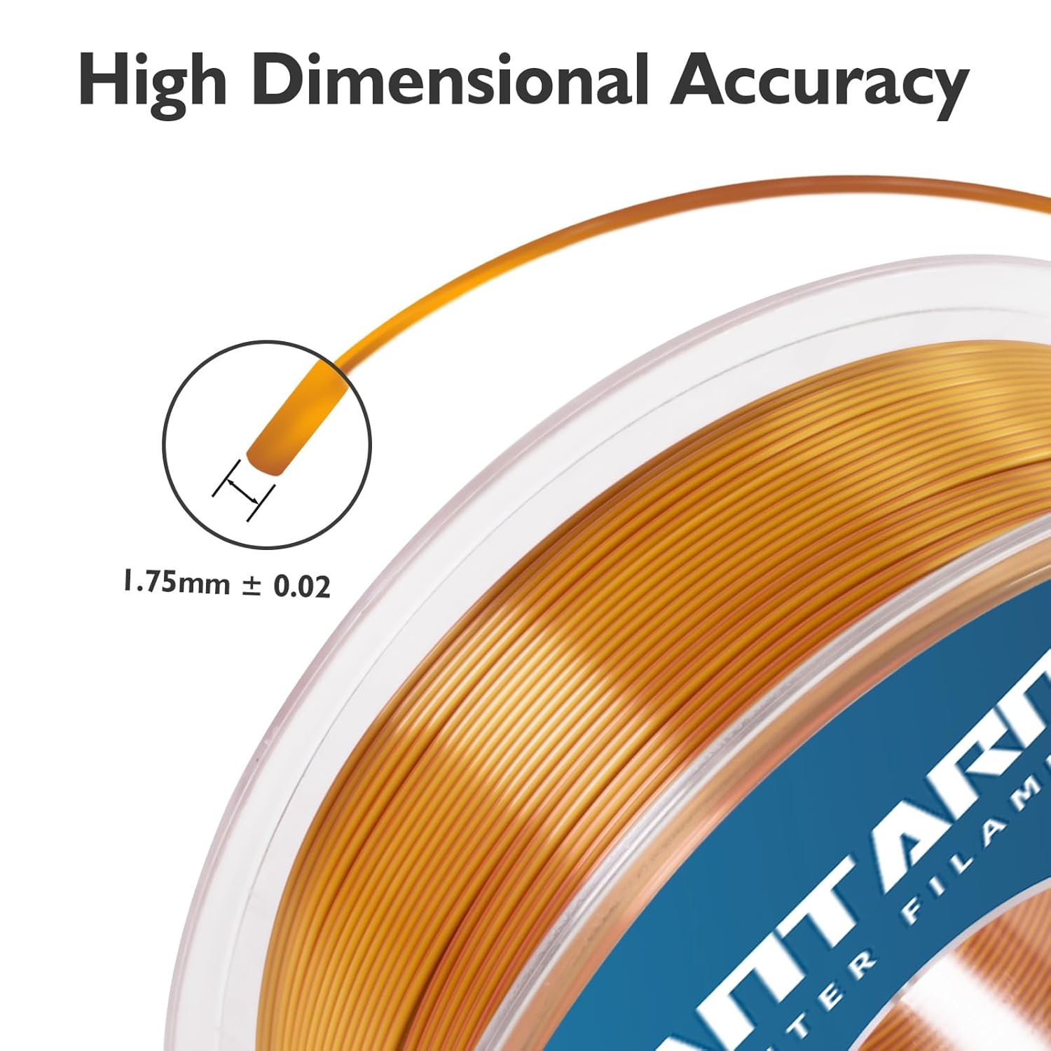 - 【Toughness Enhanced PLA Filament】 GIANTARM silk pla filament have the advantages of incredible toughness, unique printing quality, high purity with low shrinkage and superb layer bonding, meeting your personalized printing demands for functional parts.