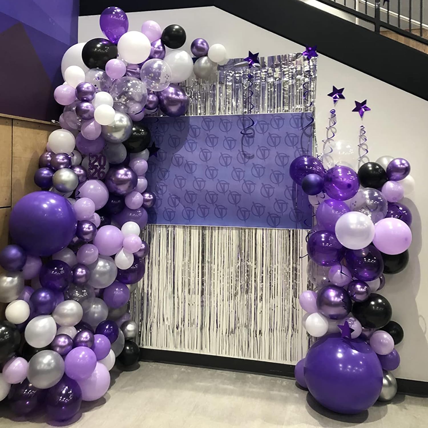 Togvu Balloon Purple and White, 60 Packs 12 Inch Dark Light Metallic Chrome Confetti Balloons Set for Girls Women Wedding Birthday Baby Shower Bridal Bachelorette Decorations