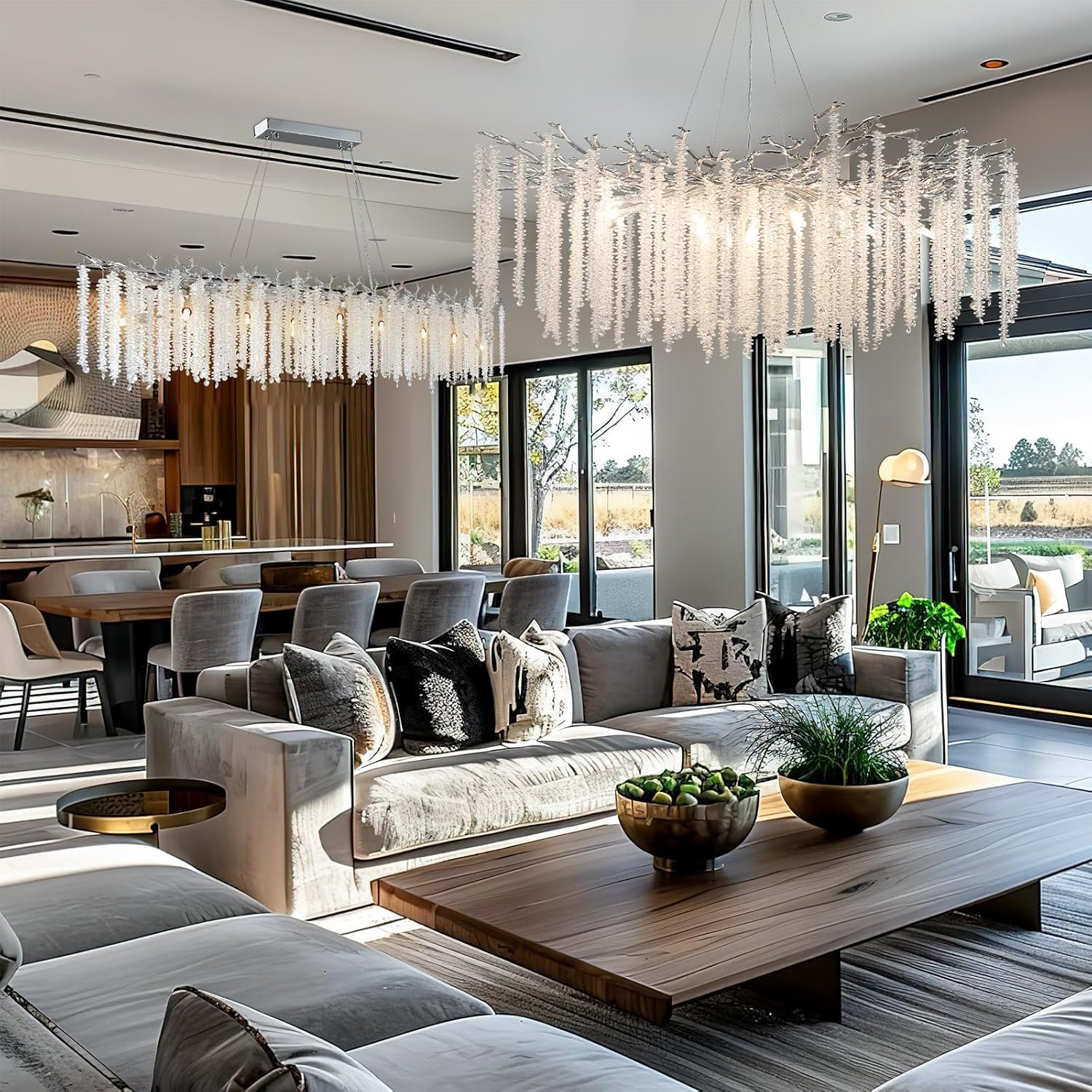 - 【Modern Crystal Chandelier】The crystal chandelier is crafted with exquisite silver tree branches and stunning 100% K9 transparent crystals that are pure, romantic, and shimmer like diamonds.The entire fixture presents a natural artistic beauty when illuminated