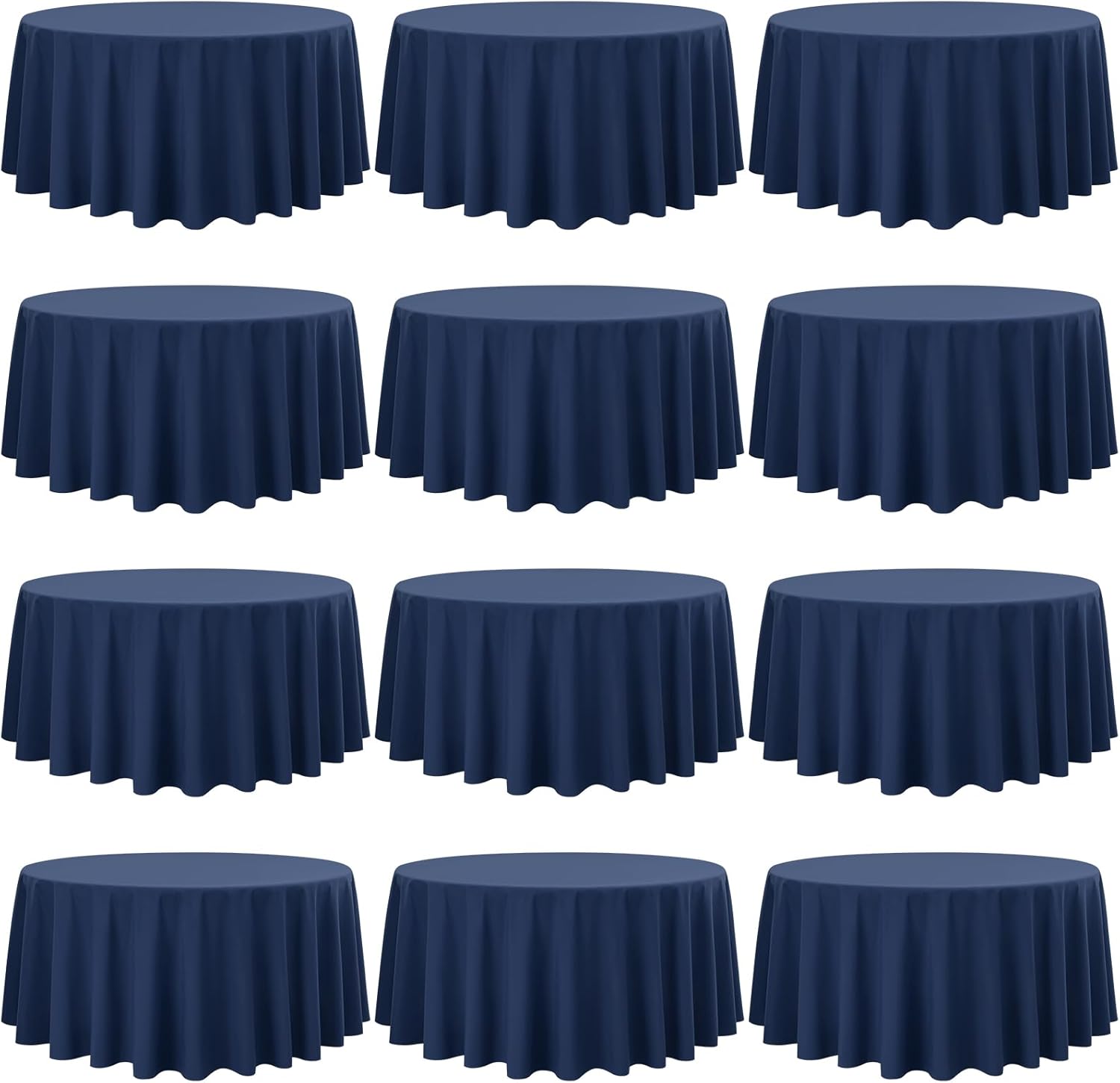 - š„ćPremium Tablecloth FabricsćYou can get 12 pieces 108 inch Navy Blue round tablecloth, our tablecloth is made of soft premium polyester fabric that resists wrinkling for an always crisp, polished look. These materials are as skin-friendly as they are environmentally friendly. Protect and decorate your tables.