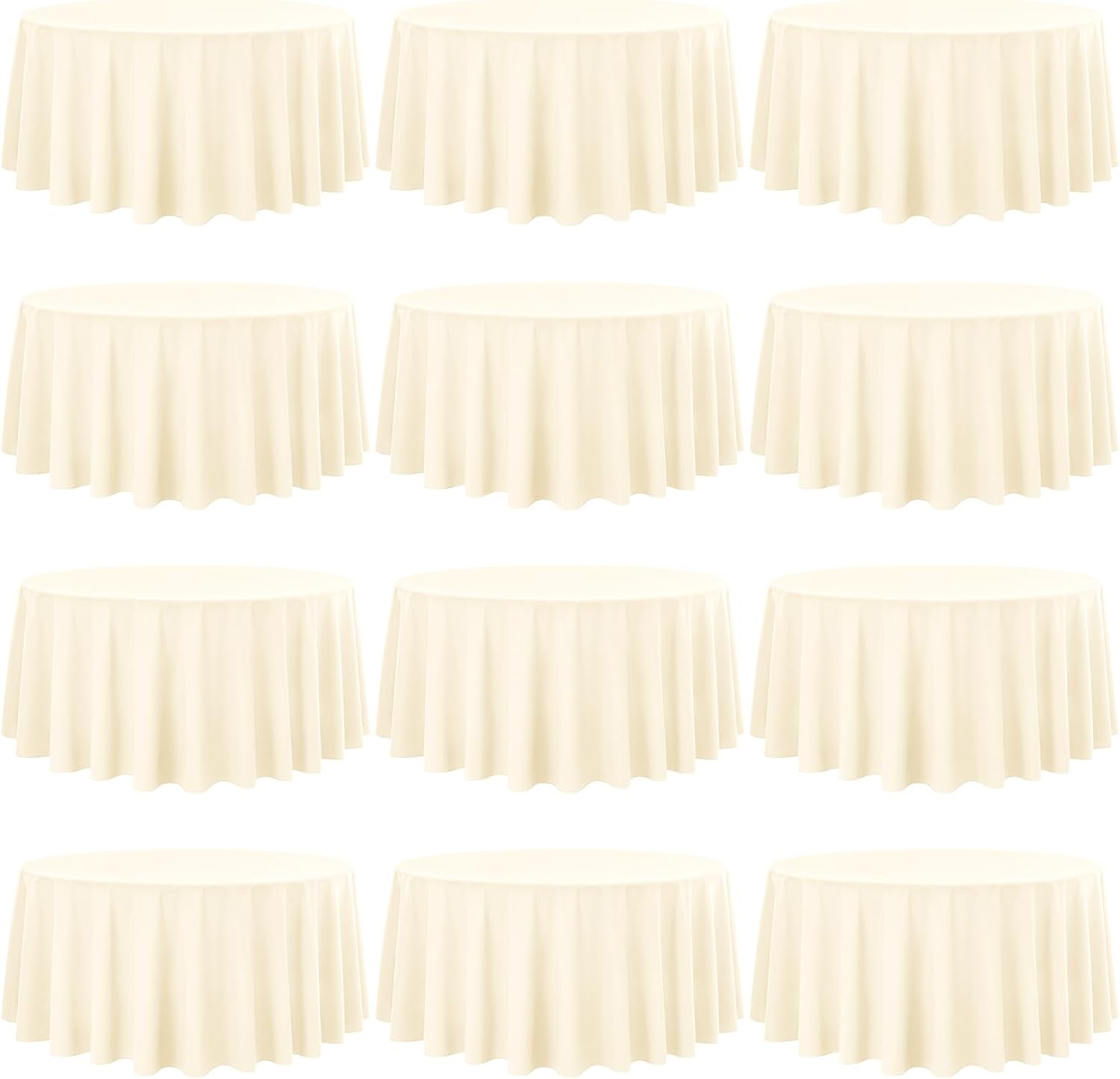 - š„ćPremium Tablecloth FabricsćYou can get 12 pieces 120 inch Beige round tablecloth, our tablecloth is made of soft premium polyester fabric that resists wrinkling for an always crisp, polished look. These materials are as skin-friendly as they are environmentally friendly. Protect and decorate your tables.