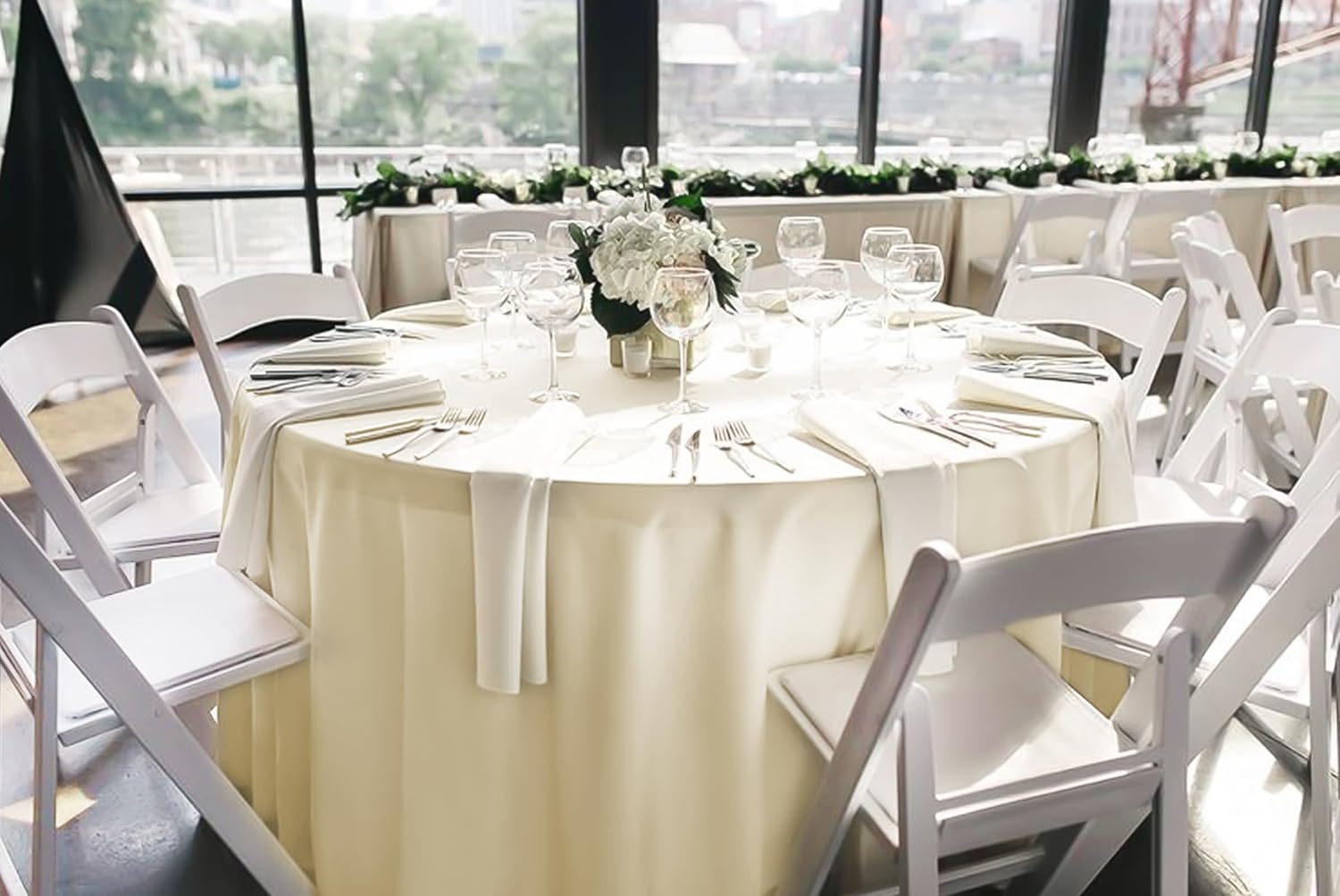 - š„ćDecorative Table CoversćPolyester is an efficient and economical choice for a tablecloth, it's extremely versatile and can be dressed up for an ultimate glam event, dressed down for a rustic vintage both wedding, and can even be used as a clean and modern look for a minimalist event. Classic colors to meet your different subject of events, like weddings, banquets, birthday or dinner party, bridal or baby shower, candy buffet,and other everyday functional or decorative use.