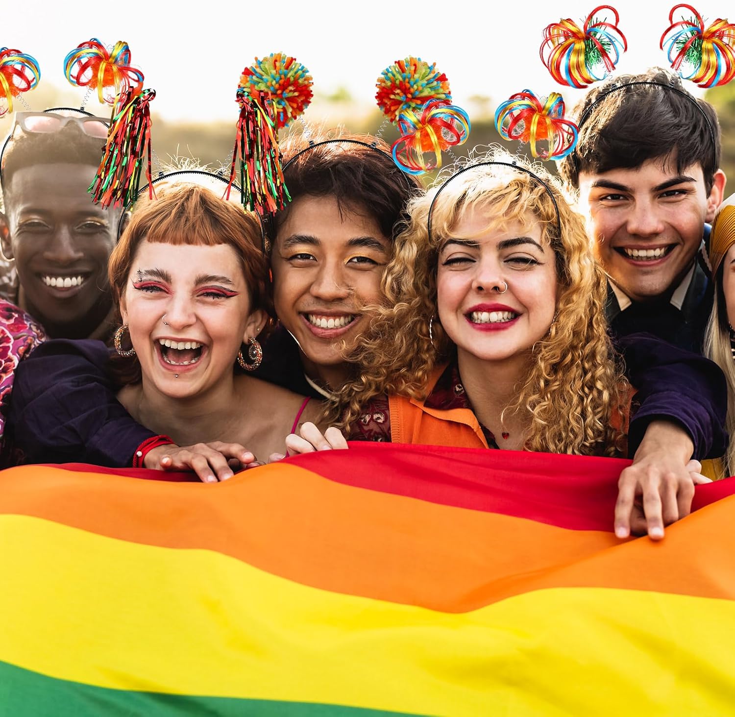 Censen 12 Pcs Halloween Pom Pom Party Headbands Tinsel Ponytails Spirit Head Bopper Headwear for Christmas Birthday Holiday