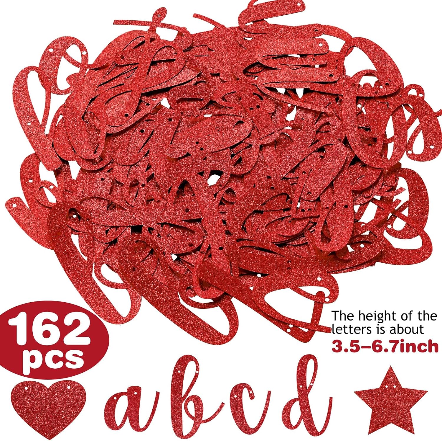 TaoBary 167 Pcs DIY Banner Kit Happy Birthday Glitter Banner Customizable Glitter Make Your Own Kit 162 Letters Symbols and Numbers 3 Rope for Birthday Halloween Wedding Christmas(Red)