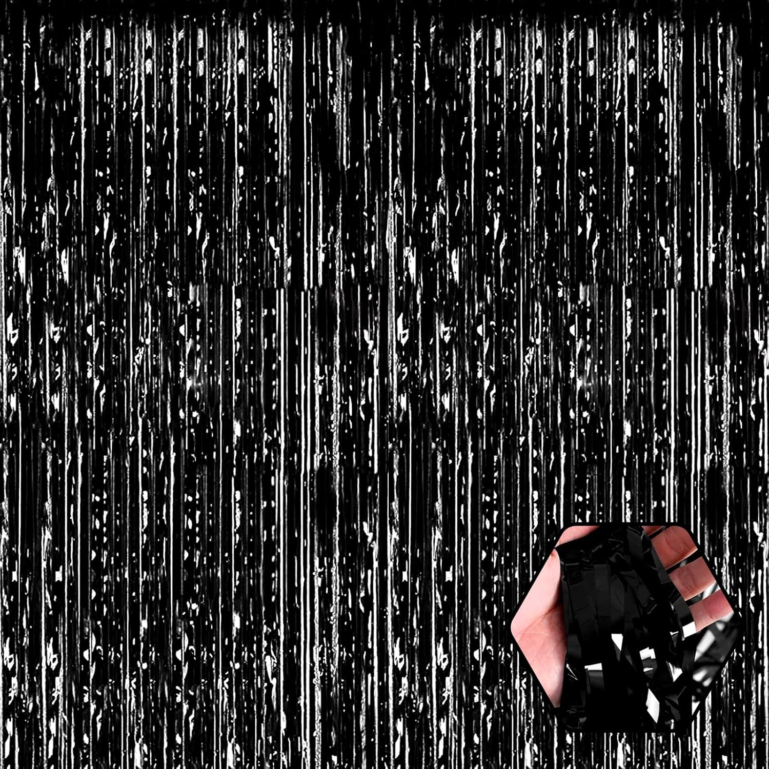 3 Pack Black Foil Fringe Curtain Backdrop, 3.28Ft x 8.2Ft Metallic Tinsel Foil Fringe Streamer Curtains for Photo Booth, Christmas Day, Thanksgiving, Wedding, New Year Party Decorations