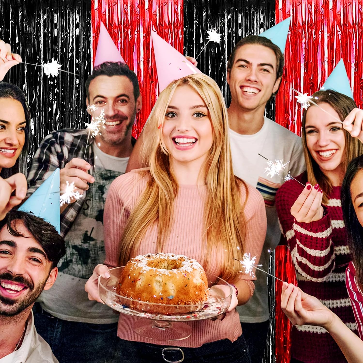 - Easy To Assemble | Strong Adhesive | Not Easy Fade : The foil fringe curtain backdrop party decorations come with double-sided adhesive tape, easy to use, just tear off the back of adhesive tape, then paste this streamers backdrop curtains on the top of wall, window, table, or as door fringe decoration.
