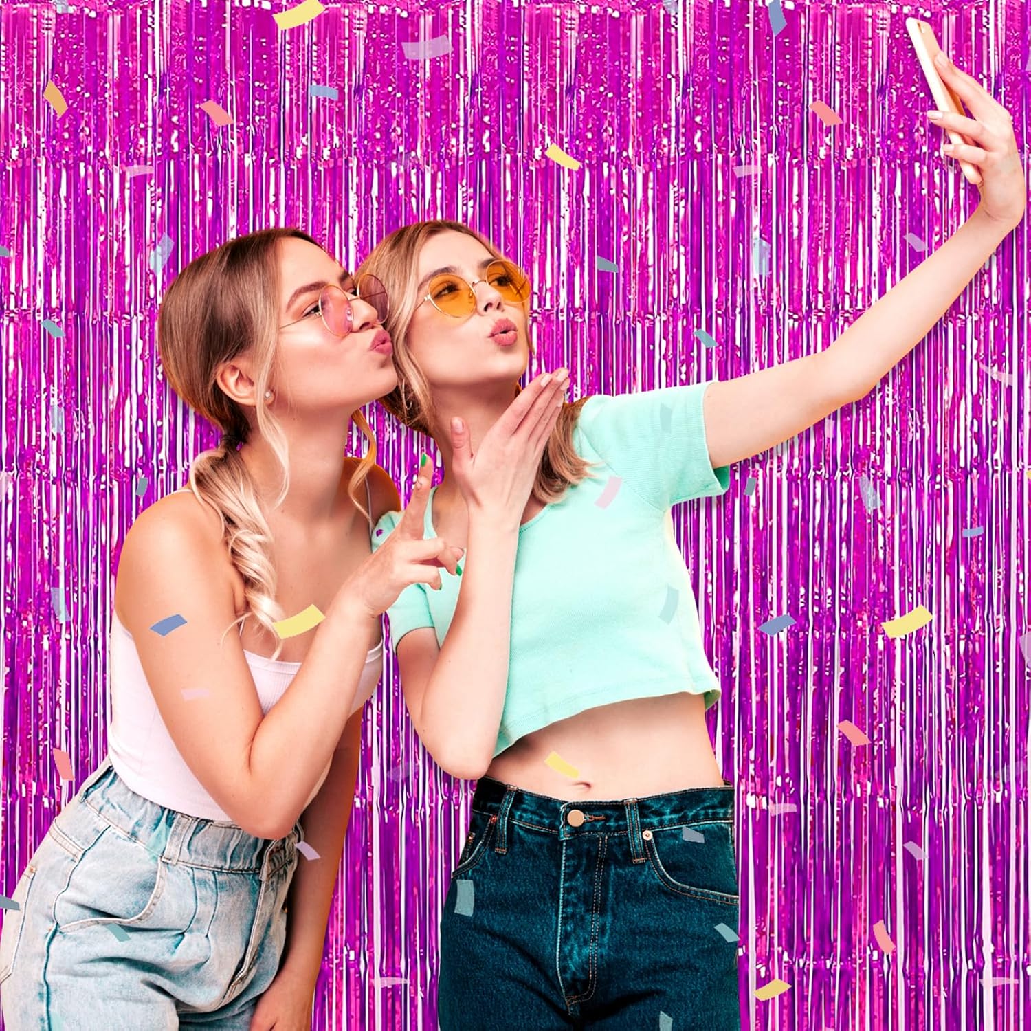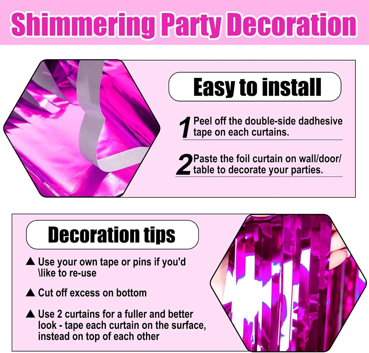 - Easy To Assemble | Strong Adhesive | Not Easy Fade : The foil fringe curtain backdrop party decorations come with double-sided adhesive tape, easy to use, just tear off the back of adhesive tape, then paste this streamers backdrop curtains on the top of wall, window, table, or as door fringe decoration.