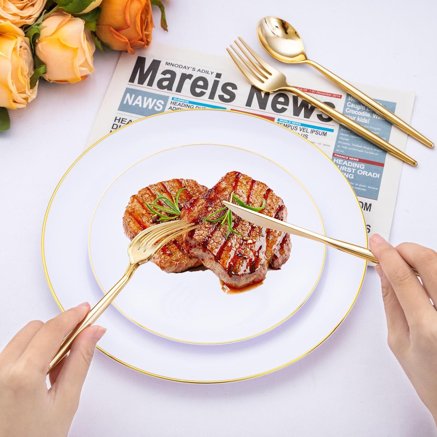 - Unique And Elegant Color Design: These gold plastic cutlery disposable are all plated with gold and have a shiny surface. These plastic silverware sets make your business activities, birthday parties, and various occasions as noble and elegant as possible.