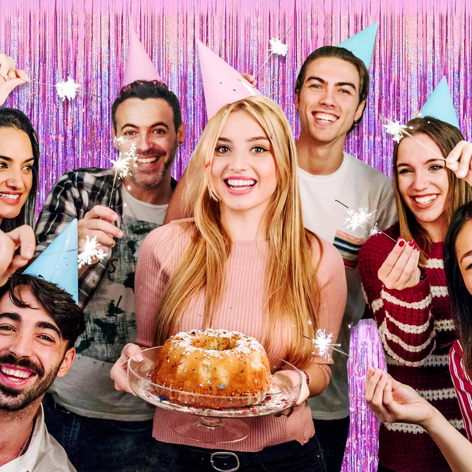 - Easy To Assemble | Strong Adhesive | Not Easy Fade : The foil fringe curtain backdrop party decorations come with double-sided adhesive tape, easy to use, just tear off the back of adhesive tape, then paste this streamers backdrop curtains on the top of wall, window, table, or as door fringe decoration.