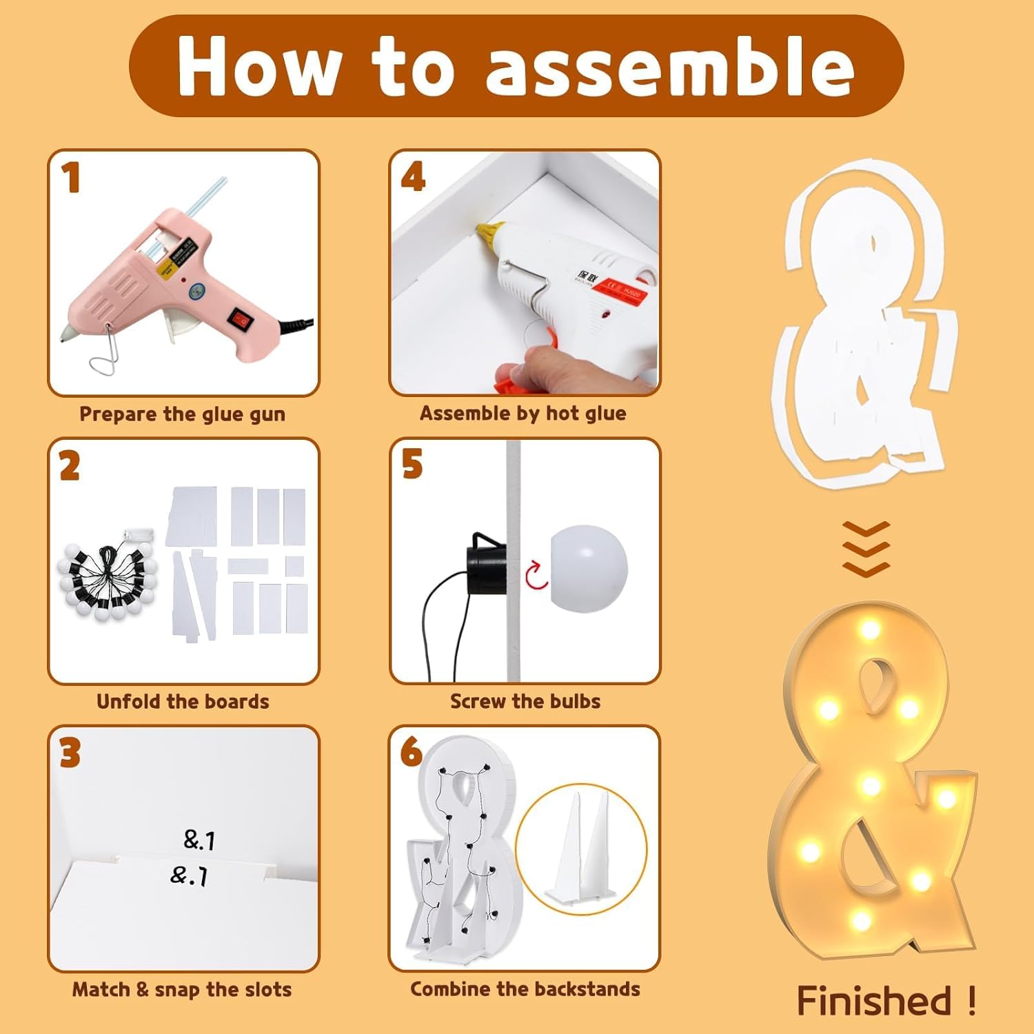 - Package Includes: A set of light up letters for party containing the pre-cut letter frames, a light string with several bulbs and assemble guiding manual. ( Noted: Glue gun and batteries are not included
