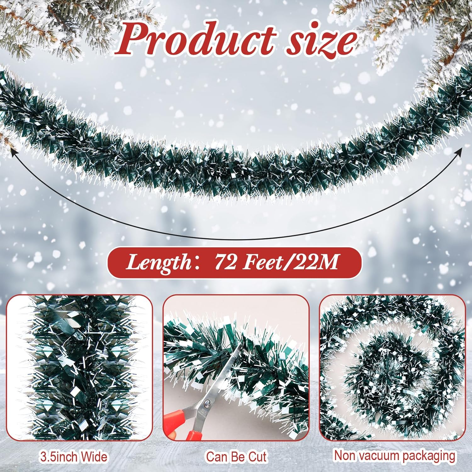 - Package Contents: the package includes 72 feet long and 3.54 inches wide tinsel garland, enough for you to use; Holiday garland looks beautiful, can be applied to decorate indoor and outdoor walls, stairs, fireplaces or doors