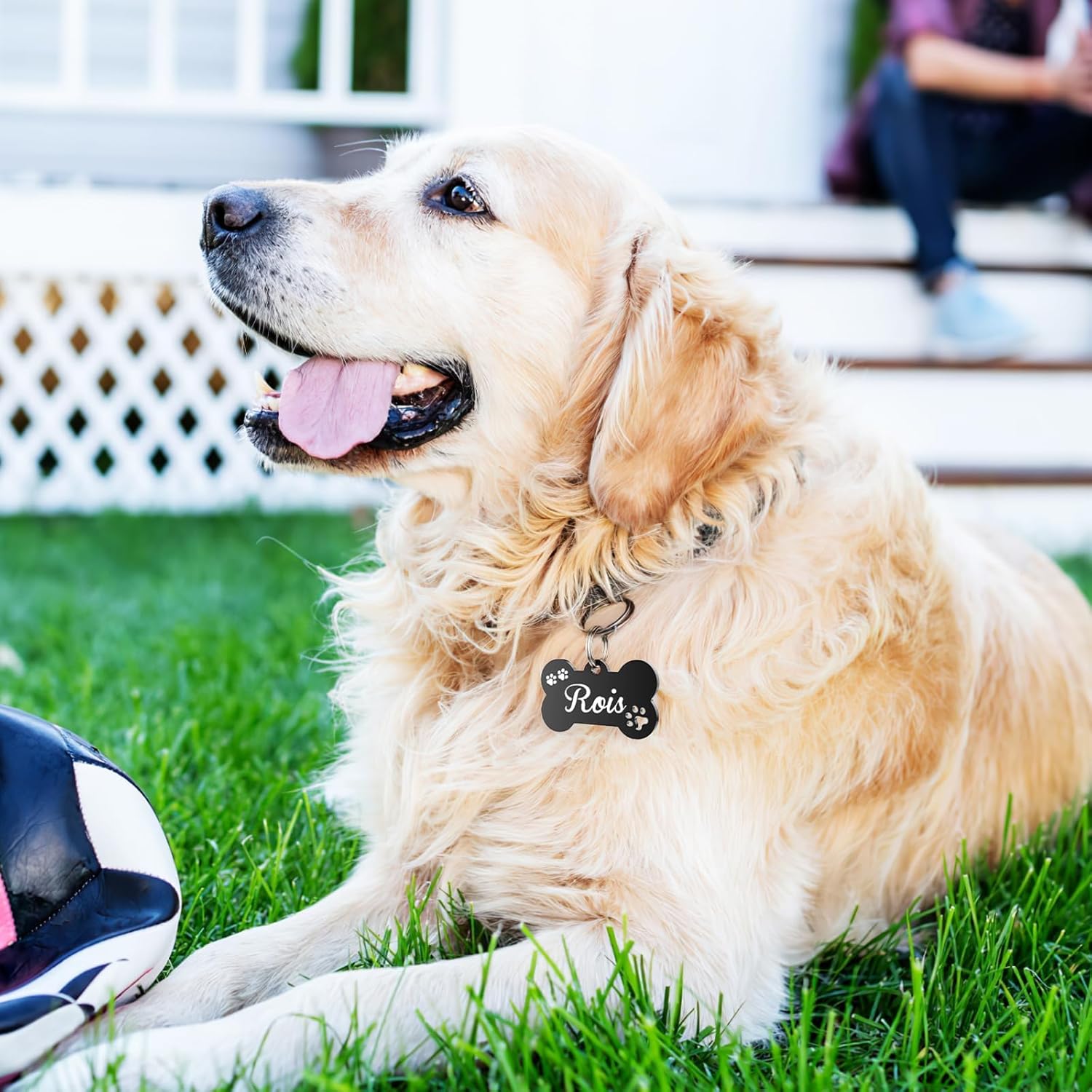 - Engraved On Both Side: The pet id tags are double-sided engravable, you can engrave your pet's name on the front, and the back can have a phone number, address, microchipped and some information to ask for help. Also, up to 4 lines of 20 characters per line can be engraved on the back.