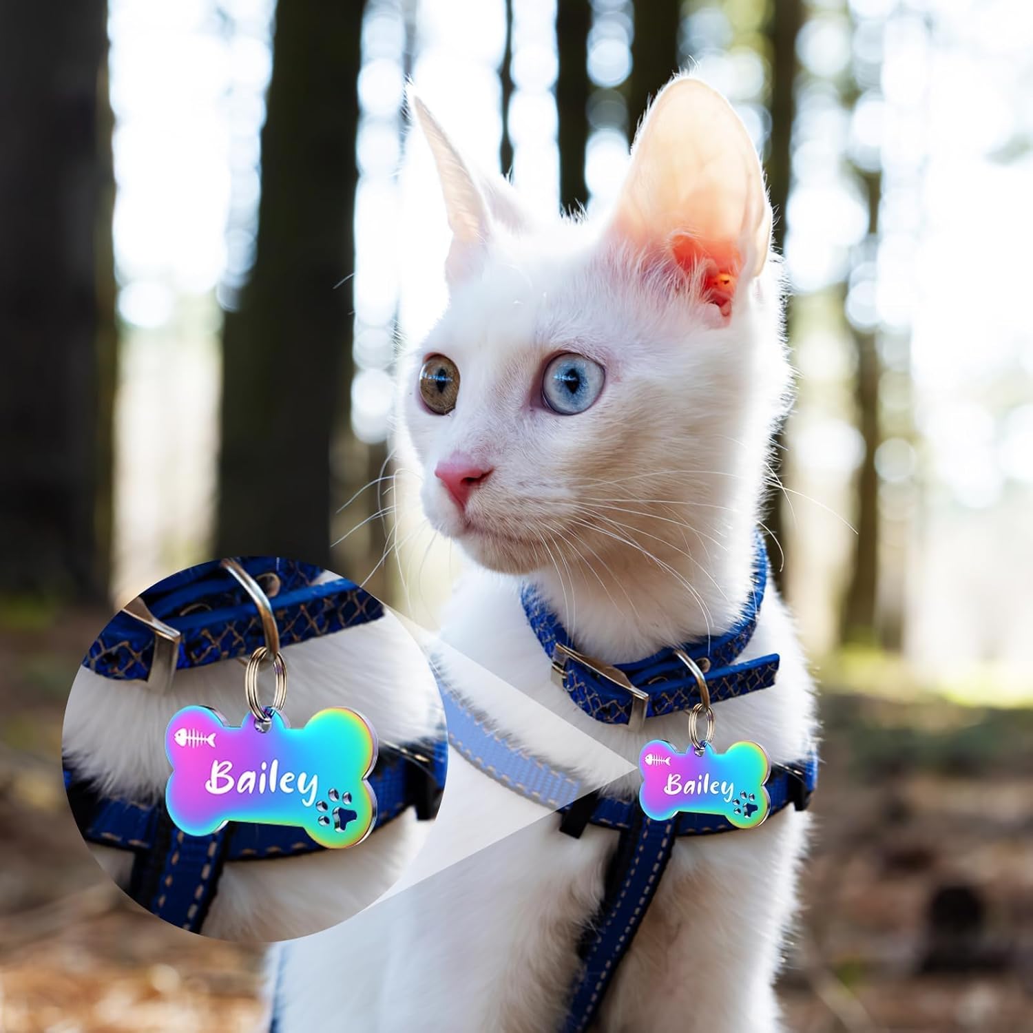- Excellent Pet Name Tag: Our customized pet name tags are made of high-strength stainless steel, which is durable and resistant to rust with a polished surface. The laser engraving ensures clear and legible text that is long-lasting and scratch-resistant. The weight and thickness are perfectly balanced, providing comfort for your furry friend without weighing them down.