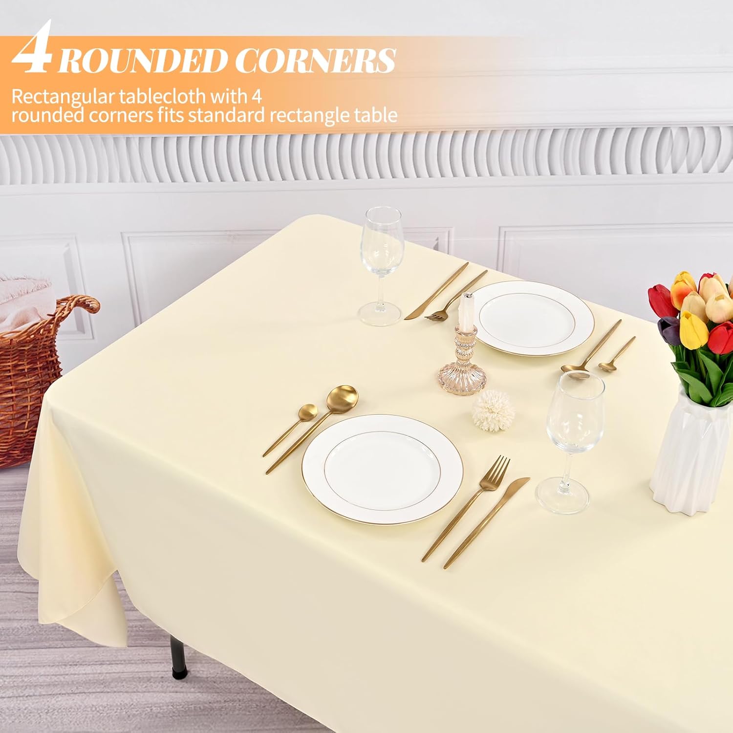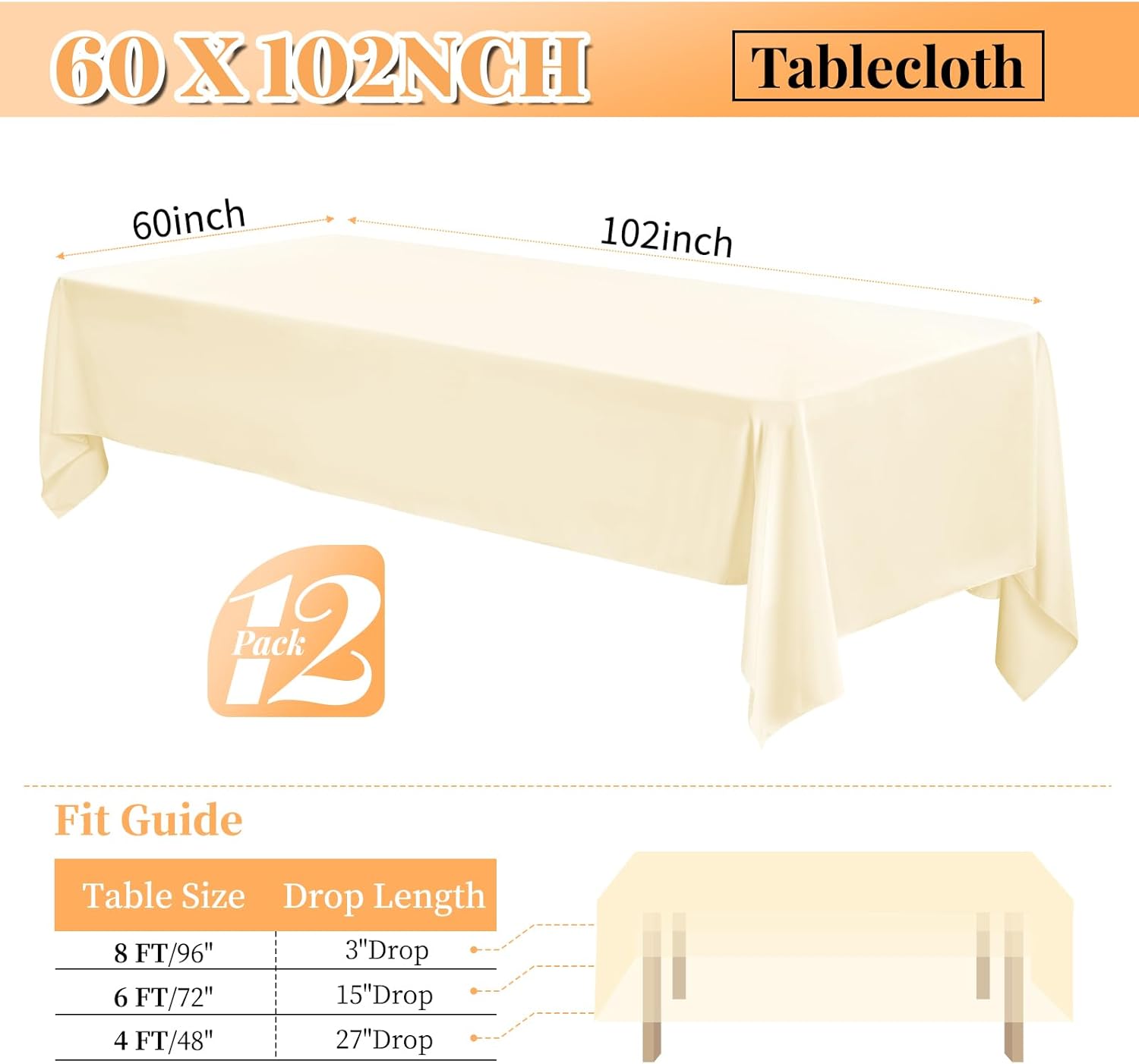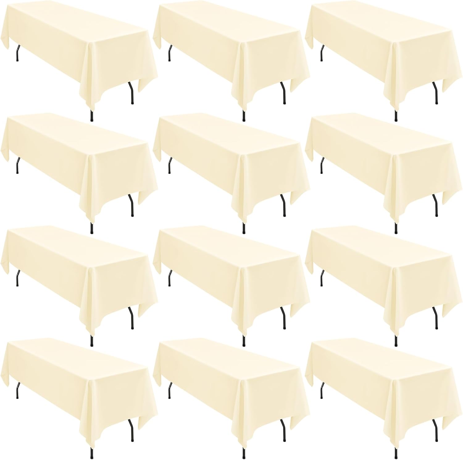 12 Pack 60 x 102 Inch Rectangle Tablecloth, Beige Tablecloth for 6 Feet Rectangle Tables, Stain and Wrinkle Resistant Washable Fabric Table Cloth for Wedding Dining Table Buffet Parties Camping
