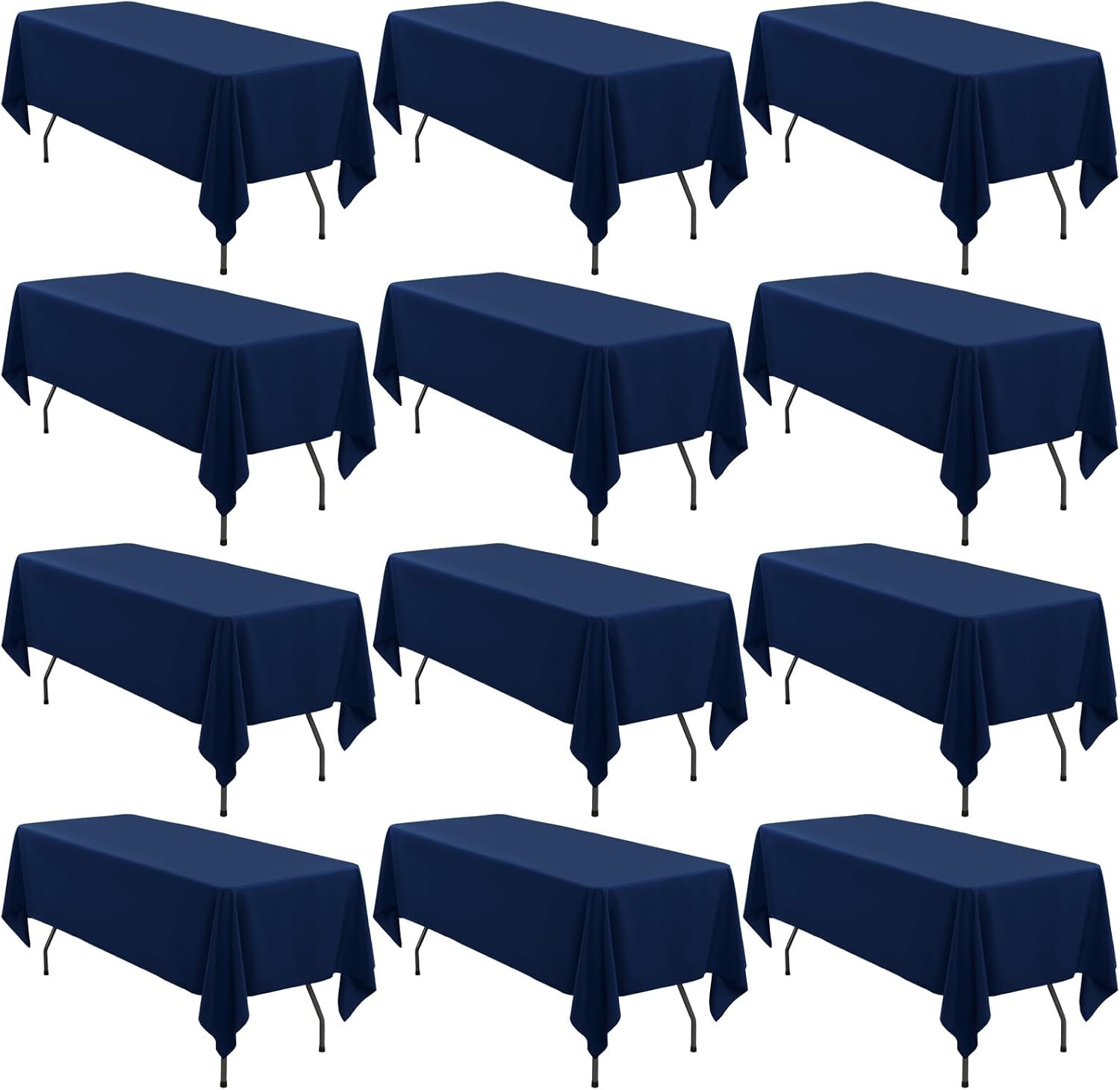 12 Pack Polyester Tablecloth 60 x 126 Inch Navy Blue Tablecloth for 8 Ft Rectangle Tables,Washable Fabric Table Covers Polyester Table Clothes for Wedding Parties Banque