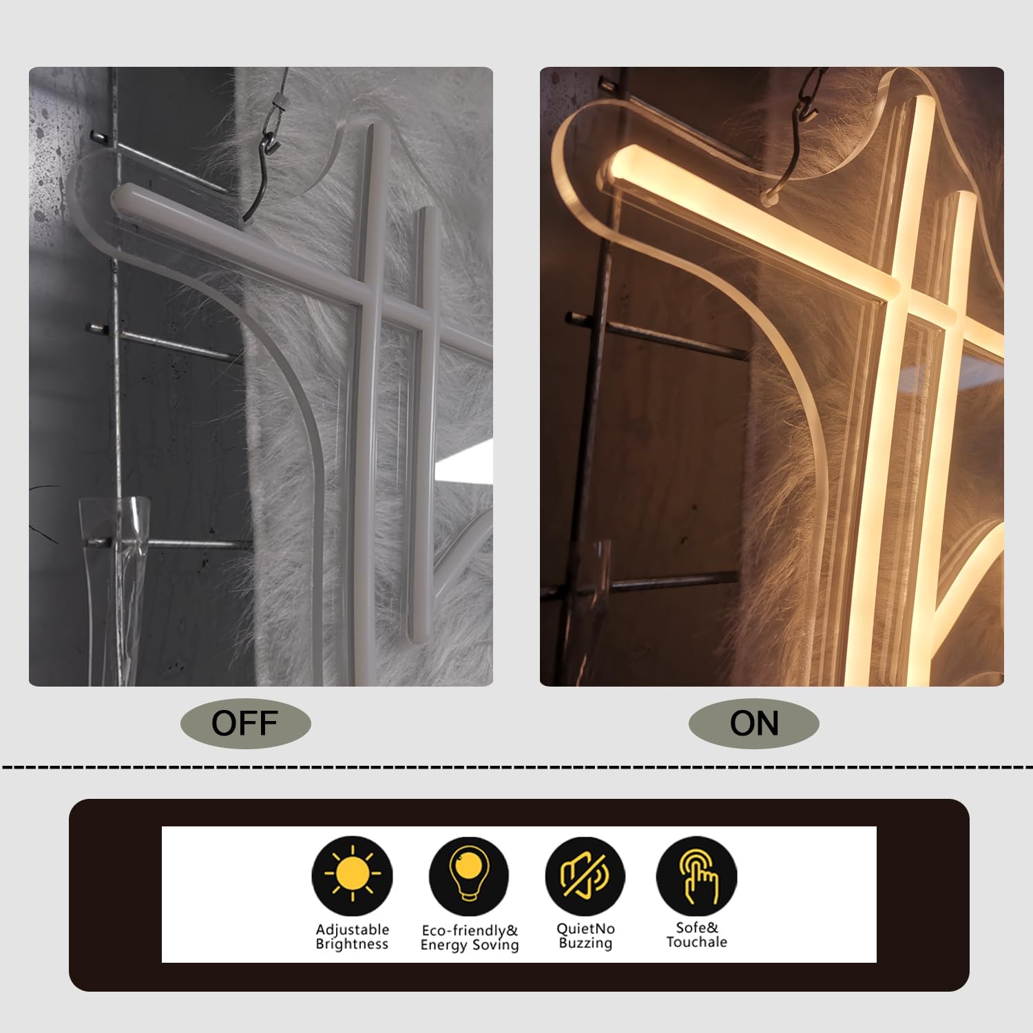 - The neon sign light with pre-drilled holes for easy hanging. comes with crystal line, adapter, just mount, and plug in.You can mount or hang it on the wall,window or place it on the table, shelf, nightstand.
