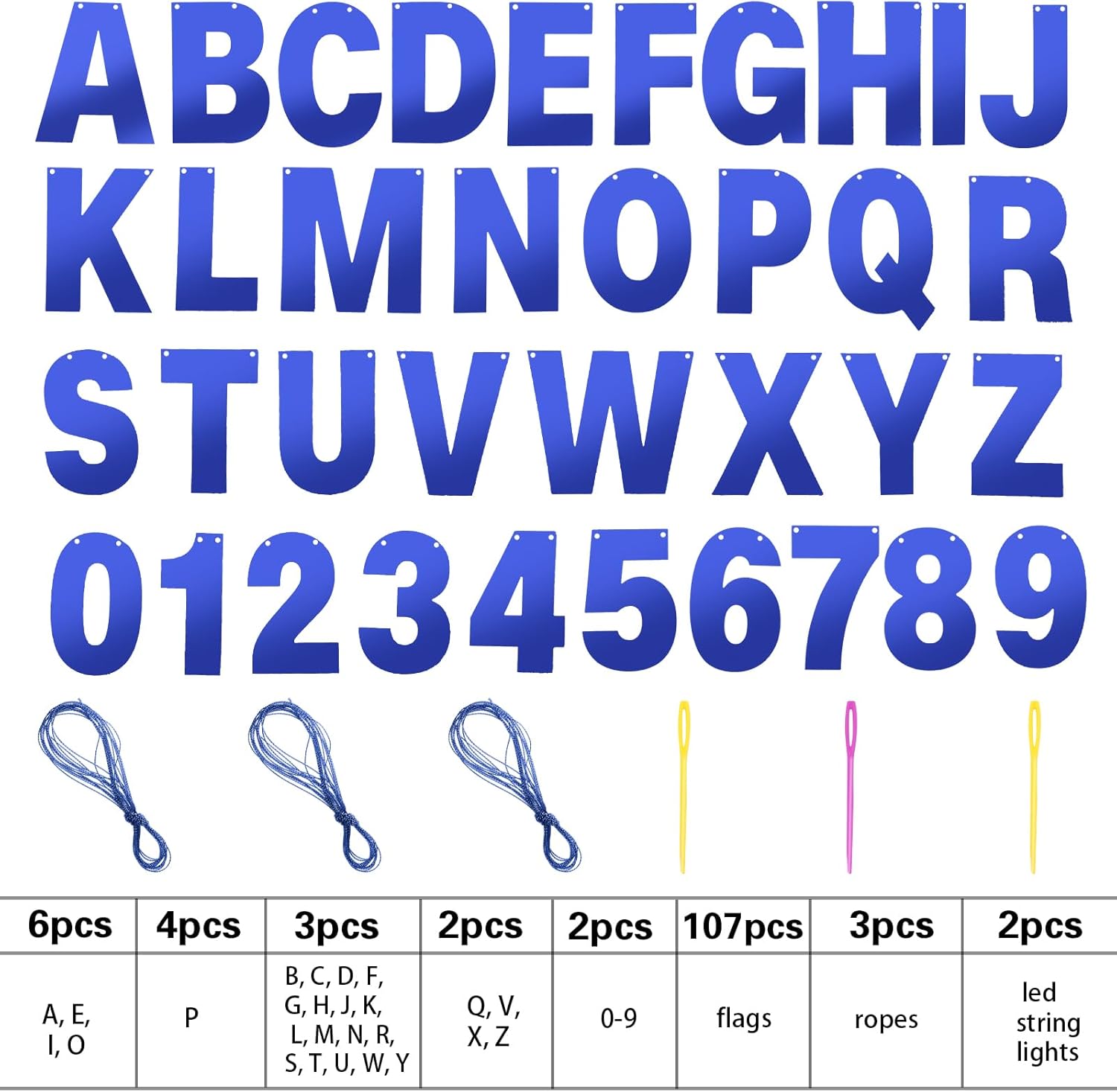 - DIY Banner Kit with Letters: you will get 107 pcs of glitter letters and numbers, including 6 'A, E, I, O' letters, 4 'P' letters, 3 'B, C, D, G, H, J, K, L, letter M, N, R, S, T, U, letter W, Y, F shape' letters, 2 'Q, V, X, Z' letters and 2 '0-9' numbers, come with 3 ropes and 2 threading device; Nice combination meet your various parties decorative demands