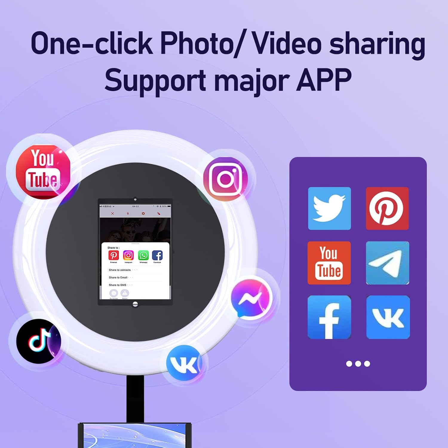 - 【MWE Photobooth Software Advantages 】Software Chacktok can control the brightness and mode of the RGB light ring;Music and light synchronization;Cool shooting special effects;Rich shooting materials,massive photo frames, digital props,stickers and background music, etc. Just One-click sharing to social media,you can also customize and upload your own materials.Perfect for making your DIY photos.