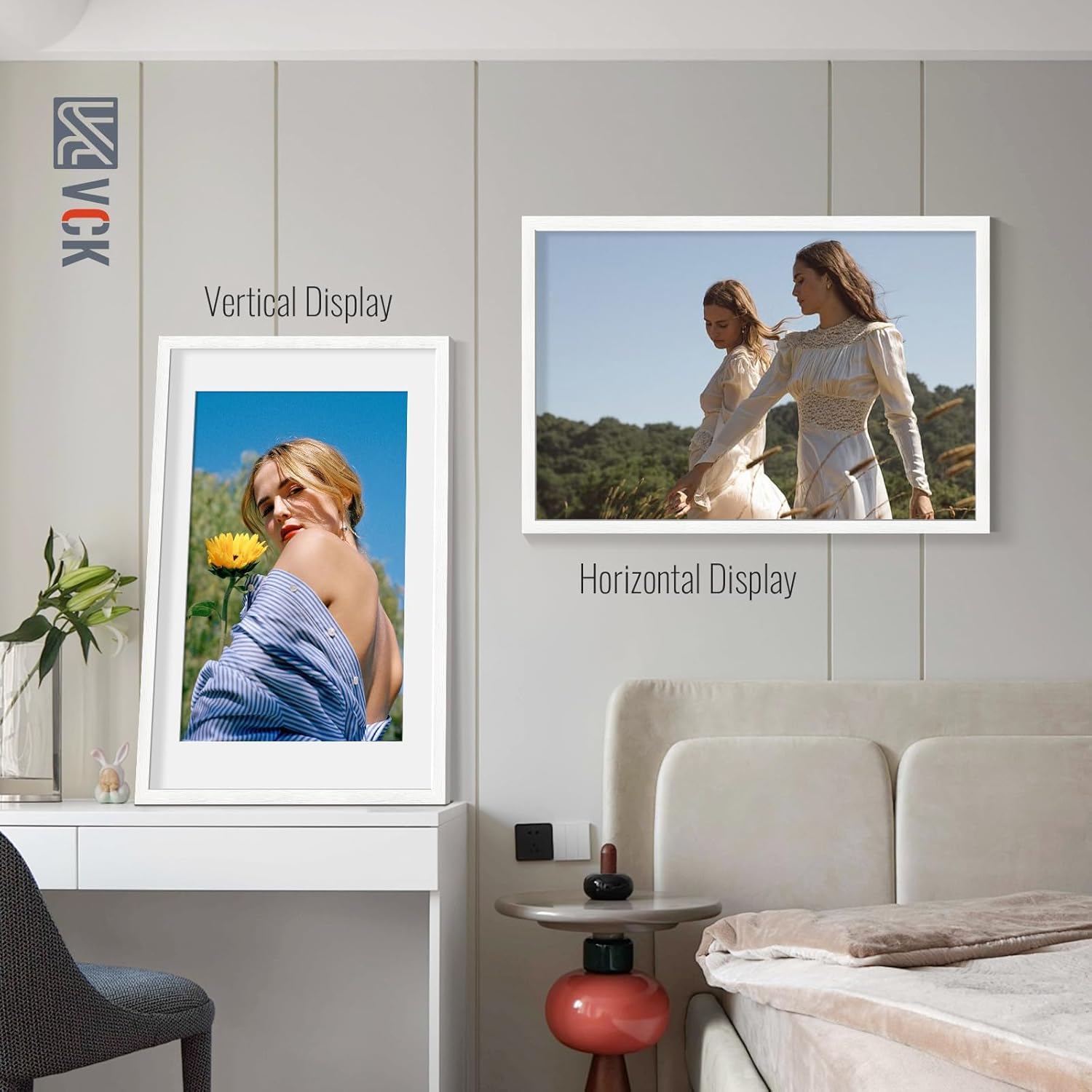 - SIMPLE YET ELEGANT TEXTURE: VCK independent designers forge this white picture frame with wondrous textures by three elements: esthetic divinity, a spirit of minimalism & professionalism, and inspiration from ripple patterns in the Swan Lake, a fit for any dΓ©cor and color to illuminate your life.