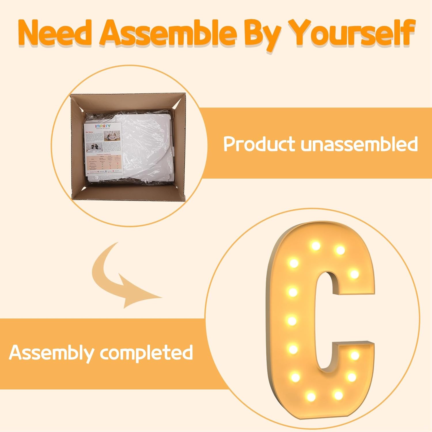 - Assembly Required: Our large marquee letters is made from foam board and easy to assemble with our splicing mode. Just follow the numbered instructions to align and insert the bottom plate, and reinforce it with a hot glue gun. Then, you're done!
