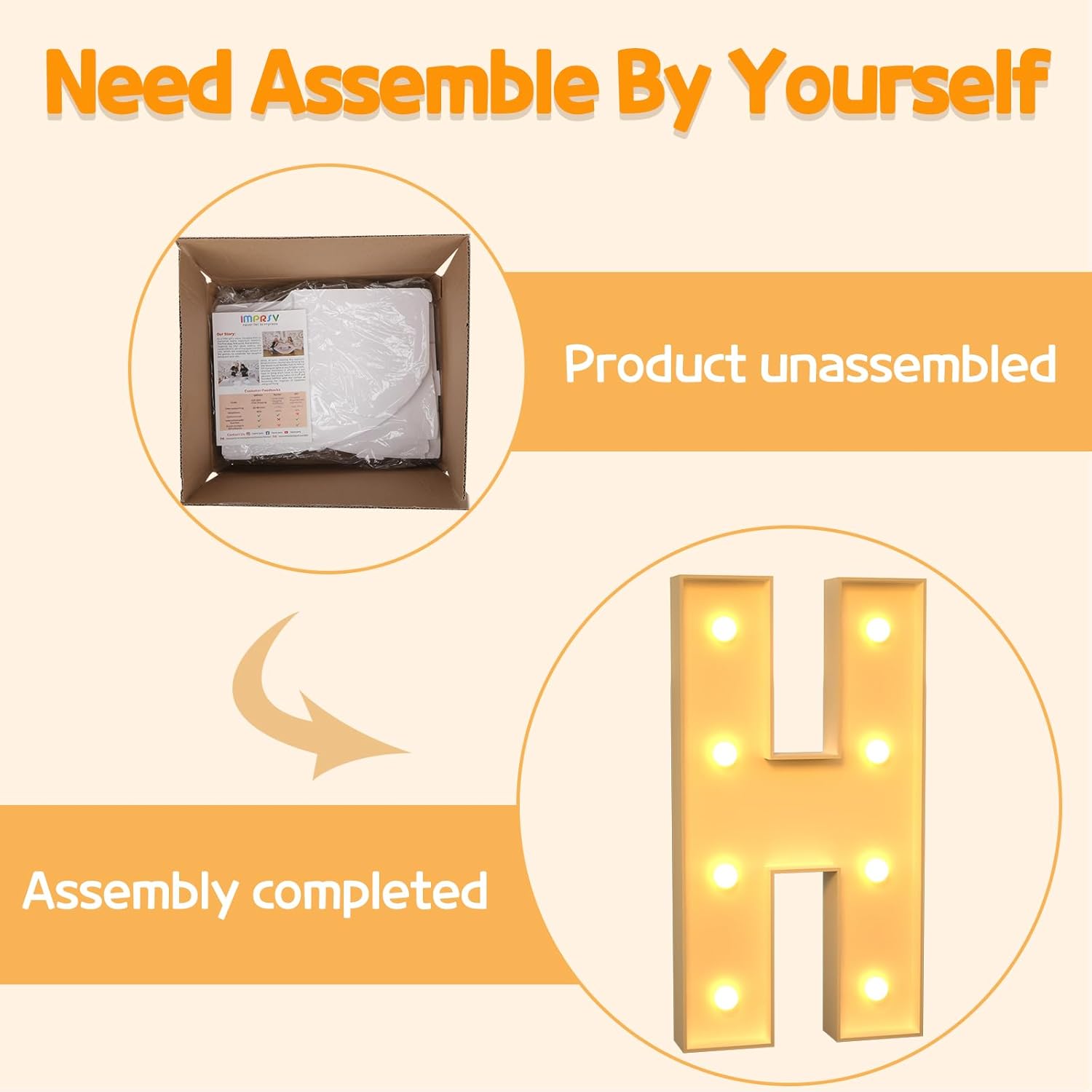 - Assembly Required: Our large marquee letters is made from foam board and easy to assemble with our splicing mode. Just follow the numbered instructions to align and insert the bottom plate, and reinforce it with a hot glue gun. Then, you're done!
