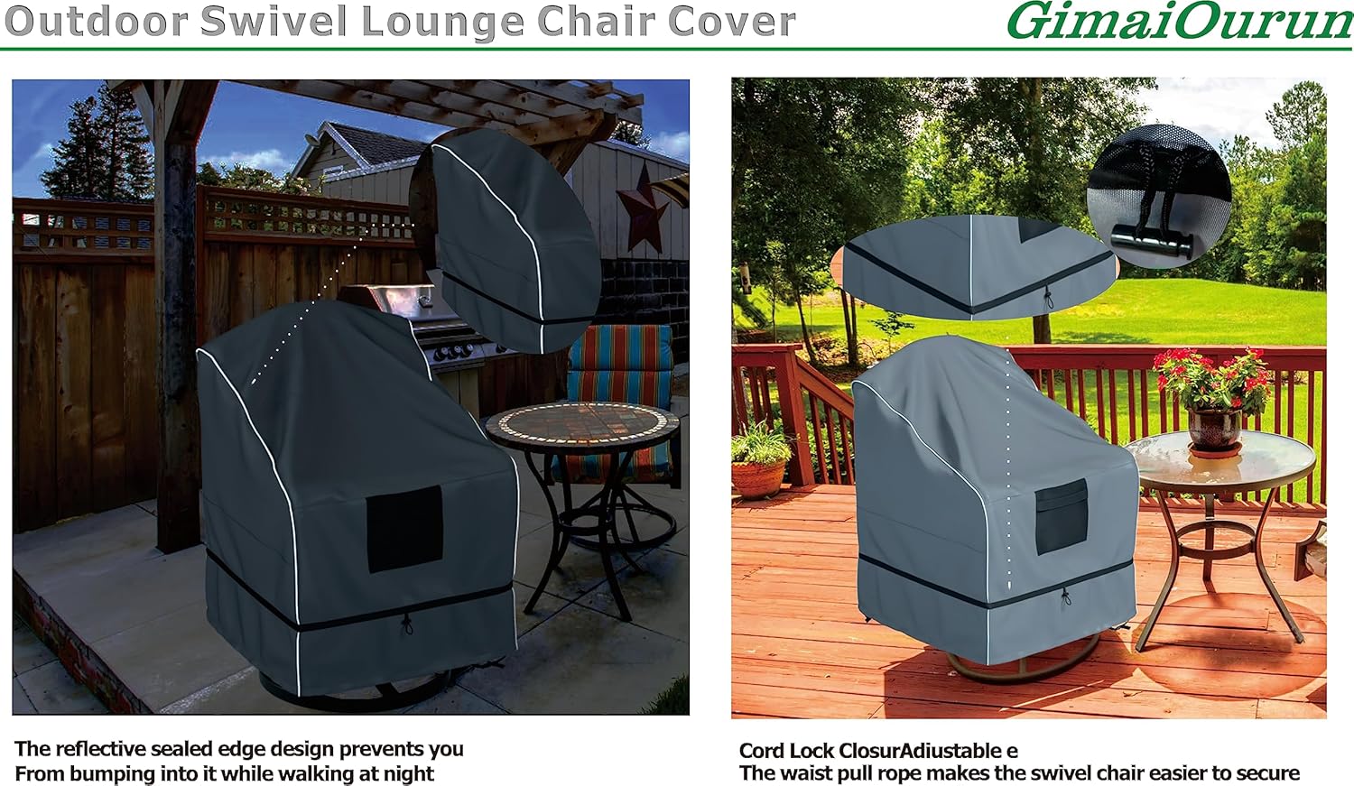 - Swivel Chair Cover Material----Outdoor swivel chair covers are made of heavy-duty 600D Oxford fabric with a water-resistant polyurethane coating that is durable, tear-resistant and fade-resistant.