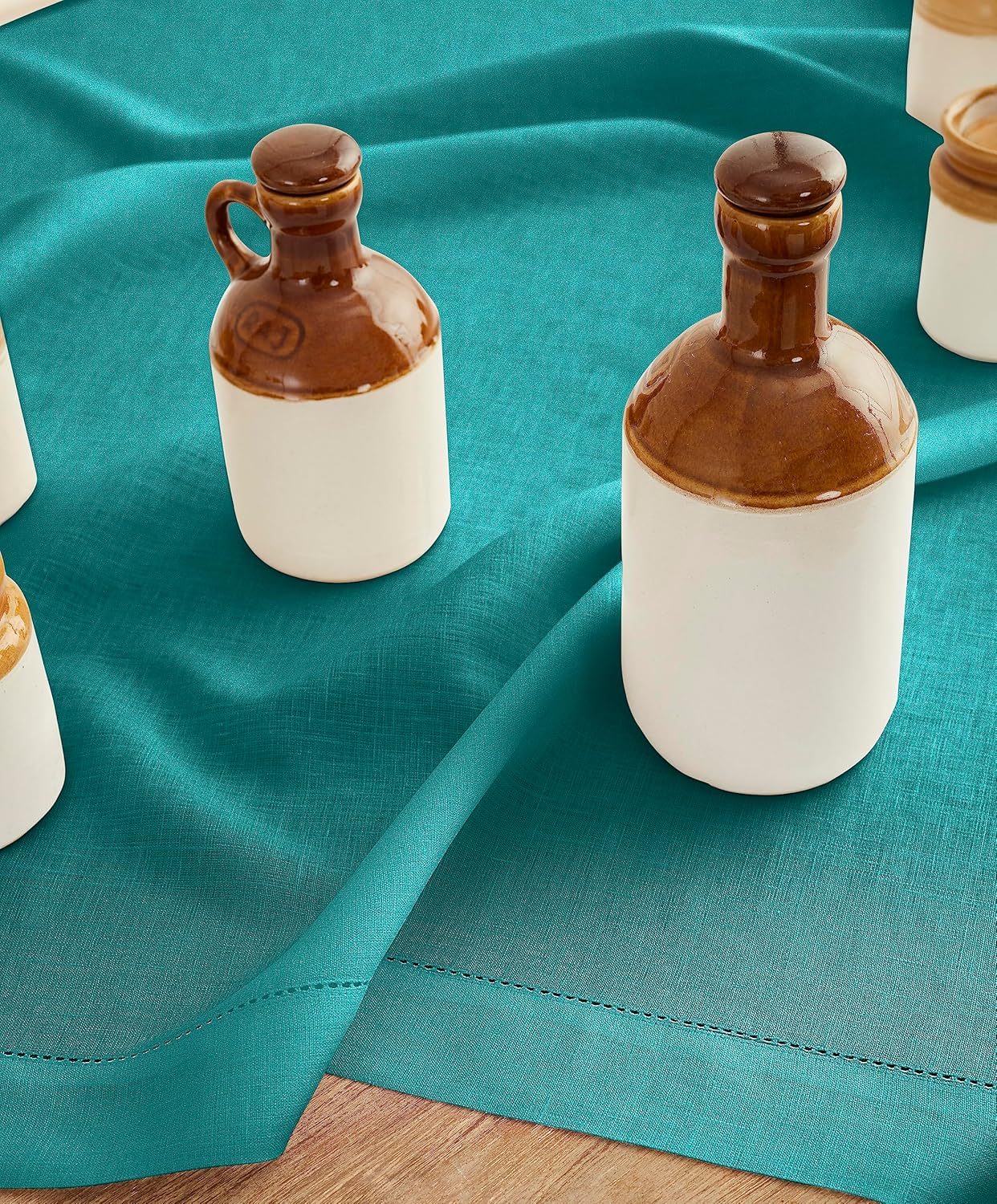 Solino Home Linen Square Tablecloth 52 x 52 Inch - 100% Pure Linen Teal Table Throw - Classic Hemstitch, Machine Washable Table Cloth for Fall, Autumn, Thanksgiving, Christmas