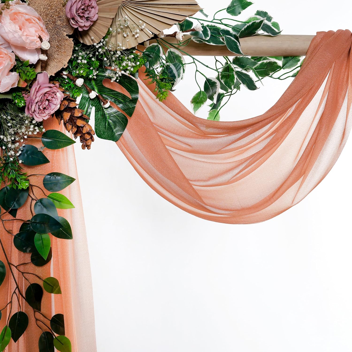 VDS Pack of 1 Panel (30 Inch X 30 Feet) Wedding Arch Draping Fabric Sheer Chiffon Fabric Drapery for Wedding Ceremony Reception Swag Backdrop Canopy Chuppah ARBO Altars Decoration (Coral Peach)