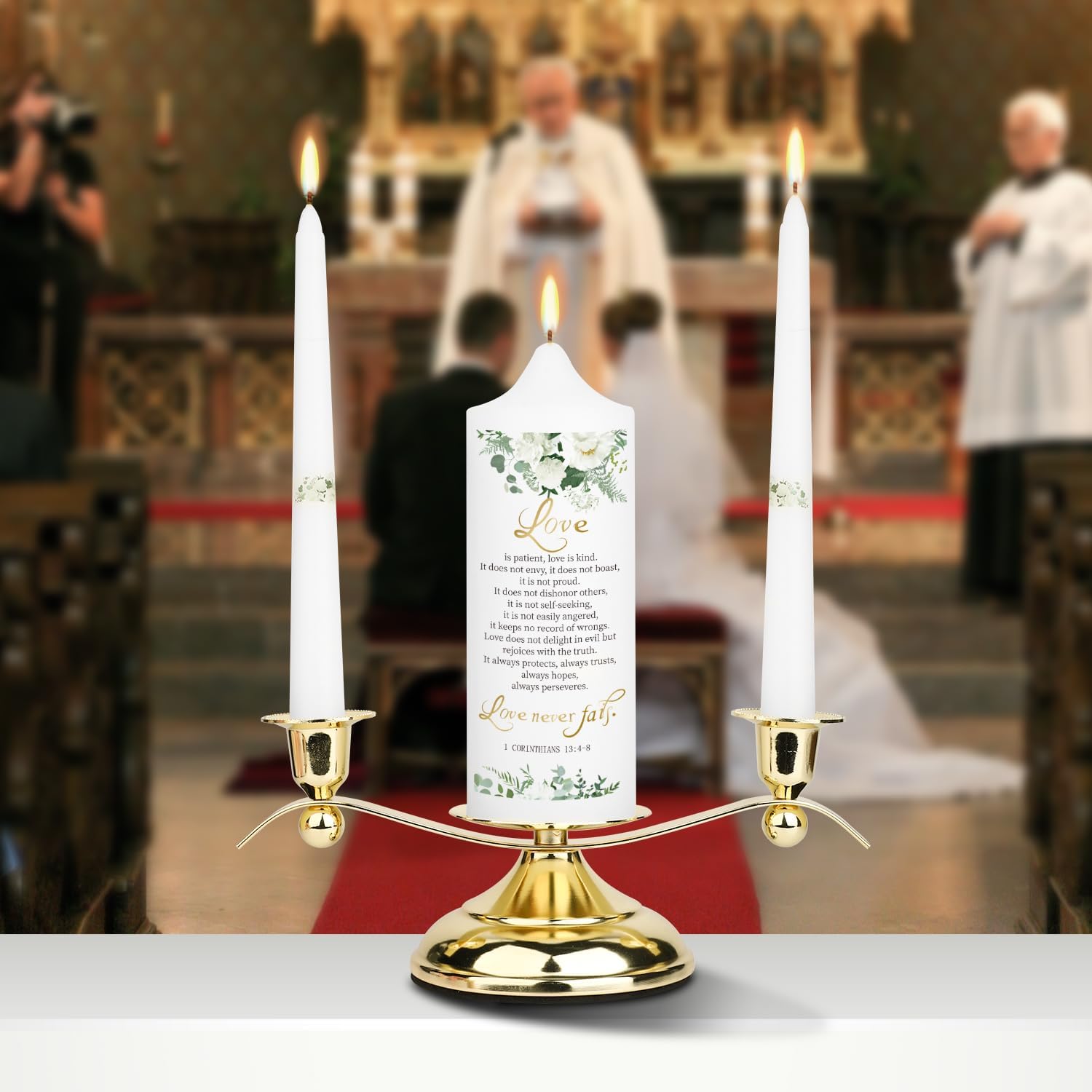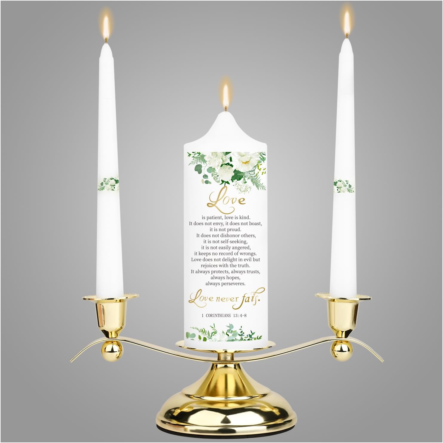 - Perfectly Matched Golden Candle Holders: Say goodbye to the hassle of finding the right size candle holders. Our Wedding Candles Set includes Tailor-Made 3 Arm Candle Holder that fit perfectly to the candle. Use the unity wedding candle holders as decorations for wedding ceremony, you can easily create a stunning display, saving you time and energy in the big day.