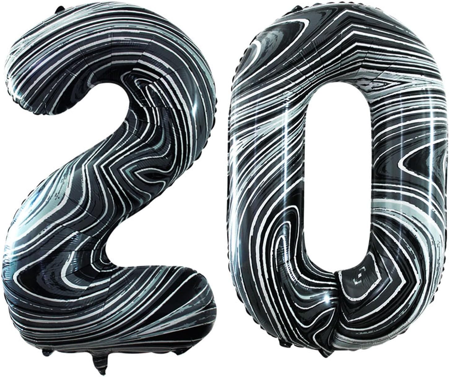 GOER Number 20 Balloons for 20th Birthday Party Decorations,42 Inch Jumbo Foil Helium Balloons for 20th Anniversary (Marble Black)