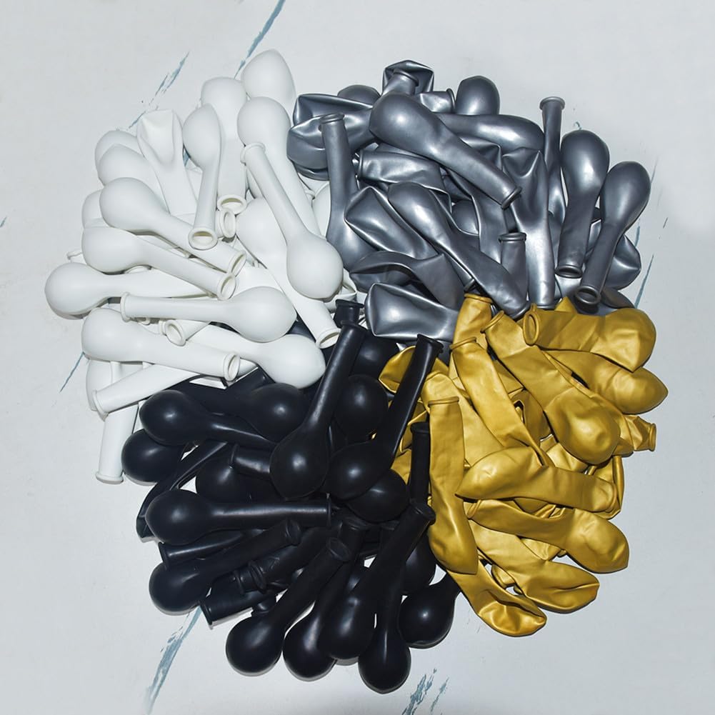 - Easy to Use: These gold silver black white balloons It is easy to inflate, please do not overfill to prevent bursting, these gold and silver balloons can be used to make balloon garlands arch kits, and more as well as a variety of party balloon decoration