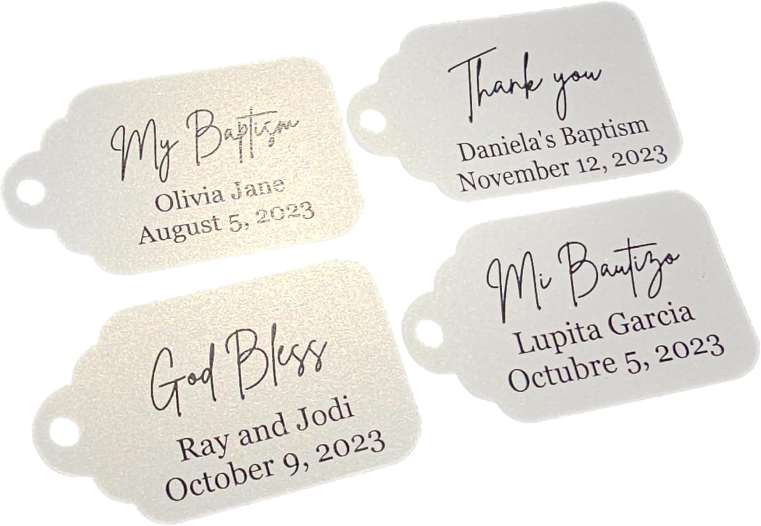 - 20 Personalized thank you tags for a baptism bautizo bautismo holy communion or christening. All of our colors are a shimmer cardstock.