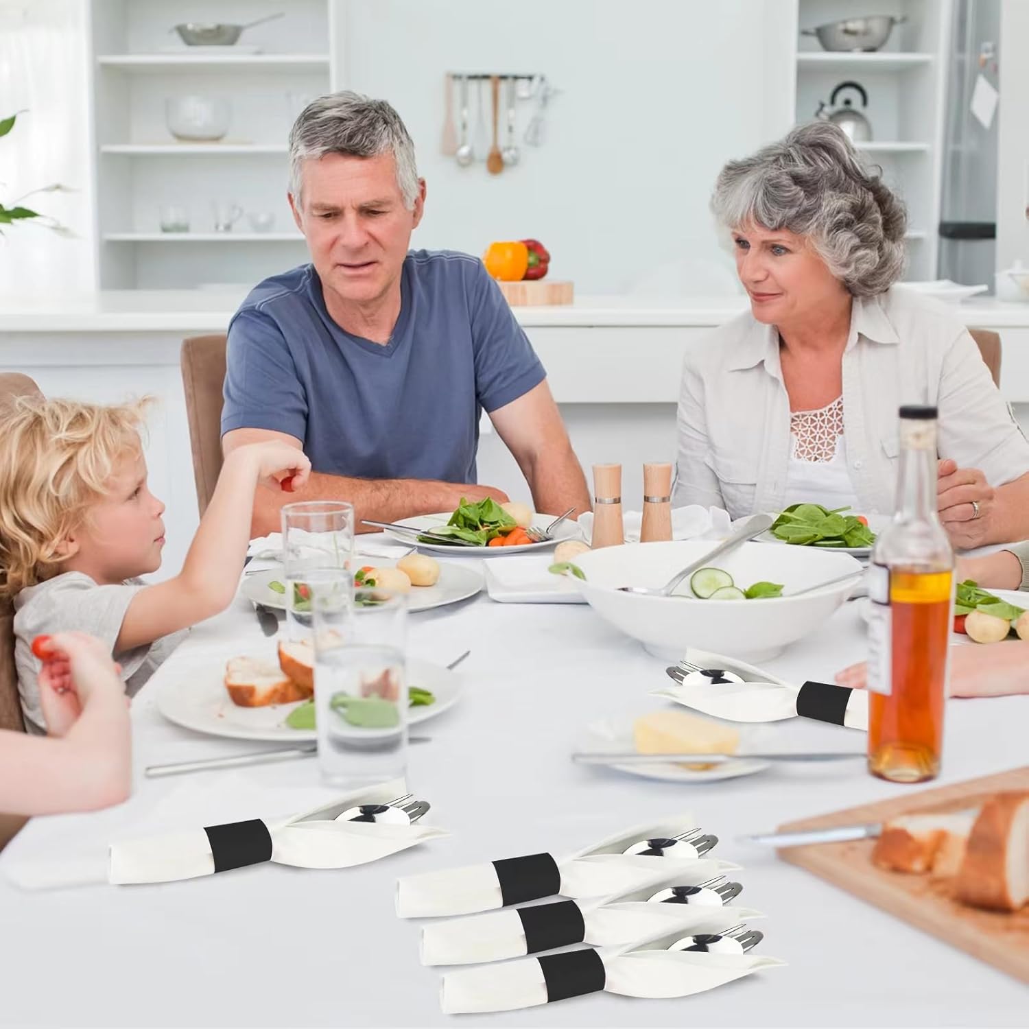 - Self-Adhesive: The Napkin Bands self-adhesive design makes it easy and convenient to wrap the napkins around silverware, keeping everything neatly organized.