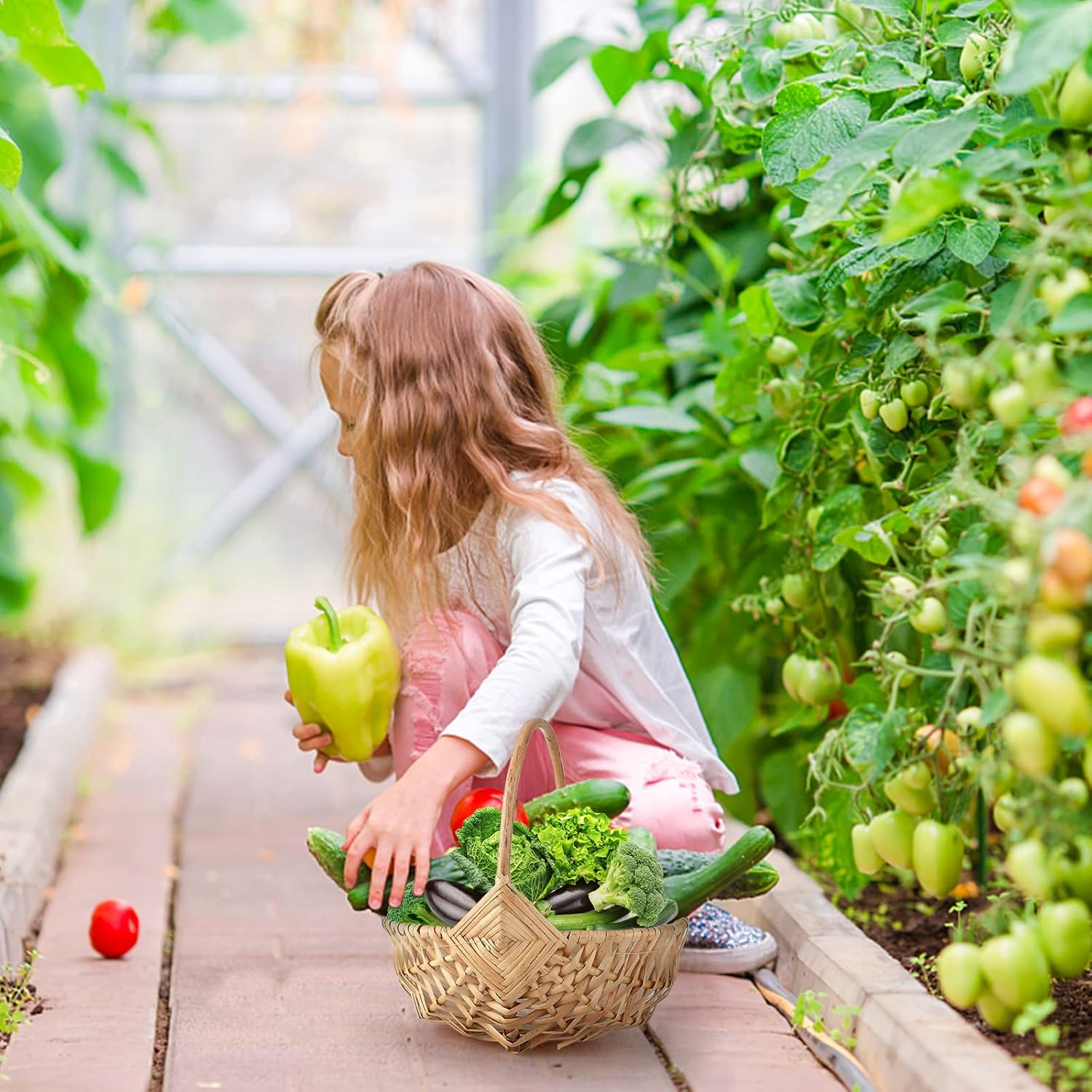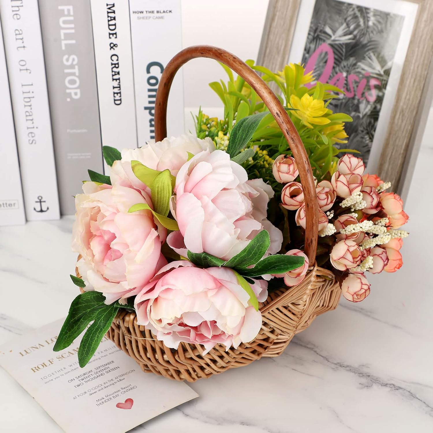 DULRLLY 2 Pcs Handwoven Flower Basket with Handle, Willow Storage Basket Empty Wicker Picnic Basket with Plastic Insert, Easter Basket Wedding Flower Girl Baskets for Home Party Decor (S)
