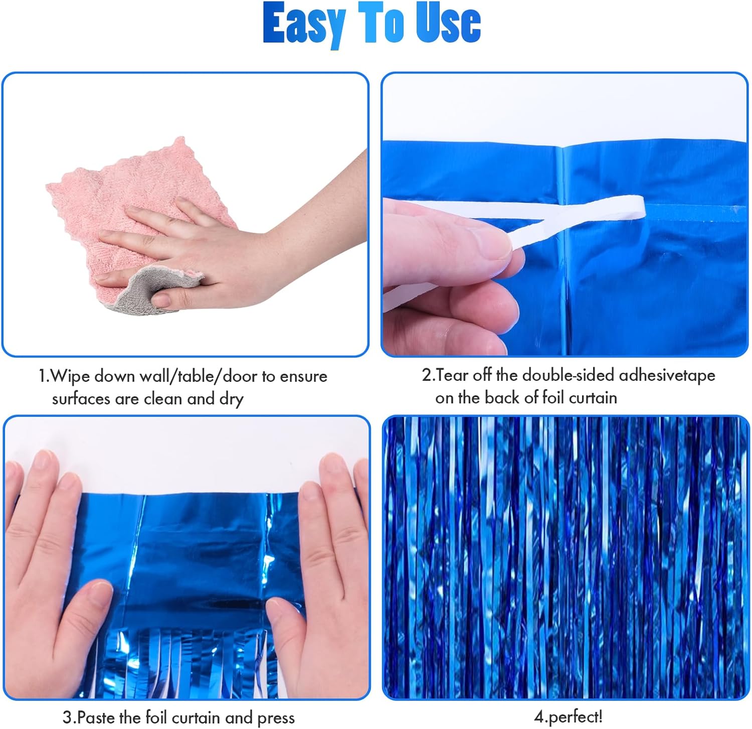 - 🎉SAFE & SHINY MATERIAL- This blue tinsel backdrop is made of high-quality shiny tinsel, non-toxic, odorless, and non-fading, safe for families with children and pets. Just transform your home into a shining streamers happy birthday decorations, and enjoy the party.
