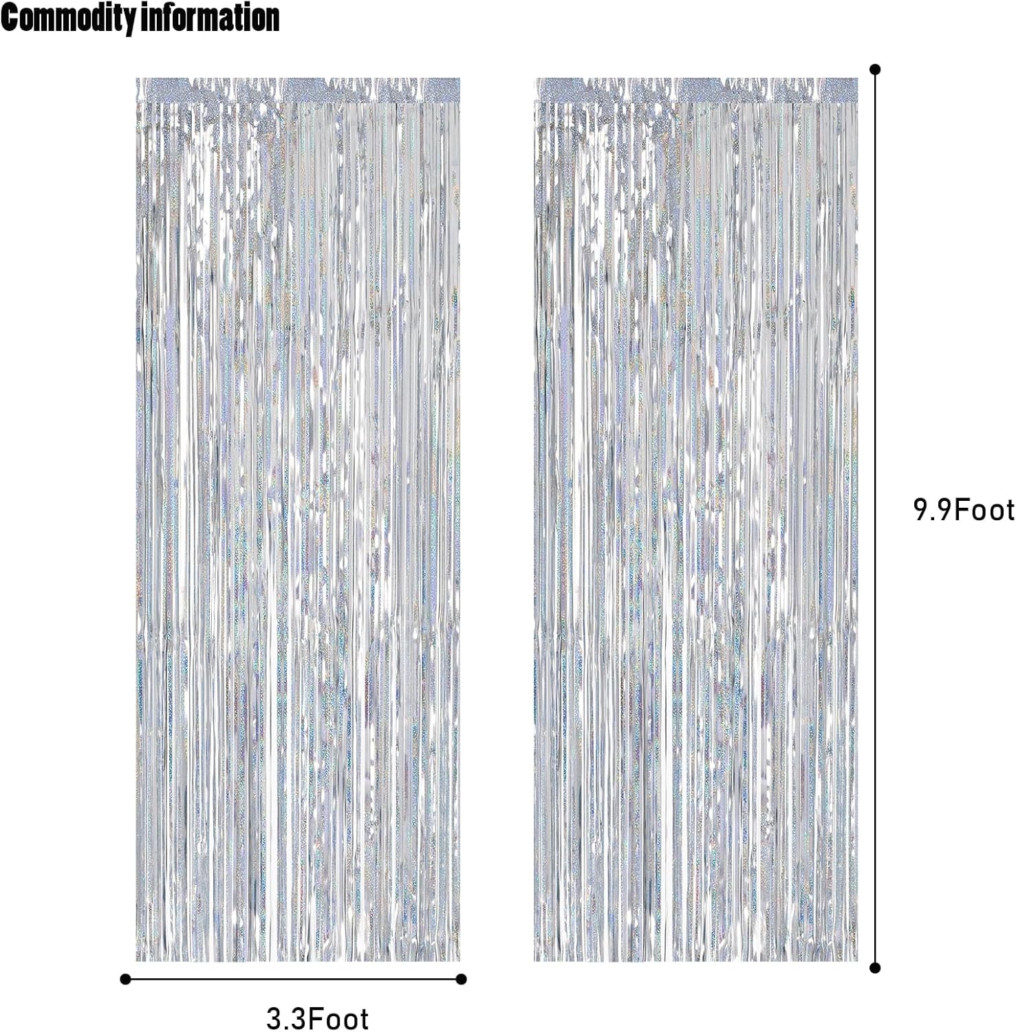- 🎉PACKAGE INCLUDED : 2 pack of silver foil fringe curtains, the size of each tinsel curtain is 3.3 ft x 8.2 ft, enough length for hanging on a door or covering a wall fully, suitable for any parties.