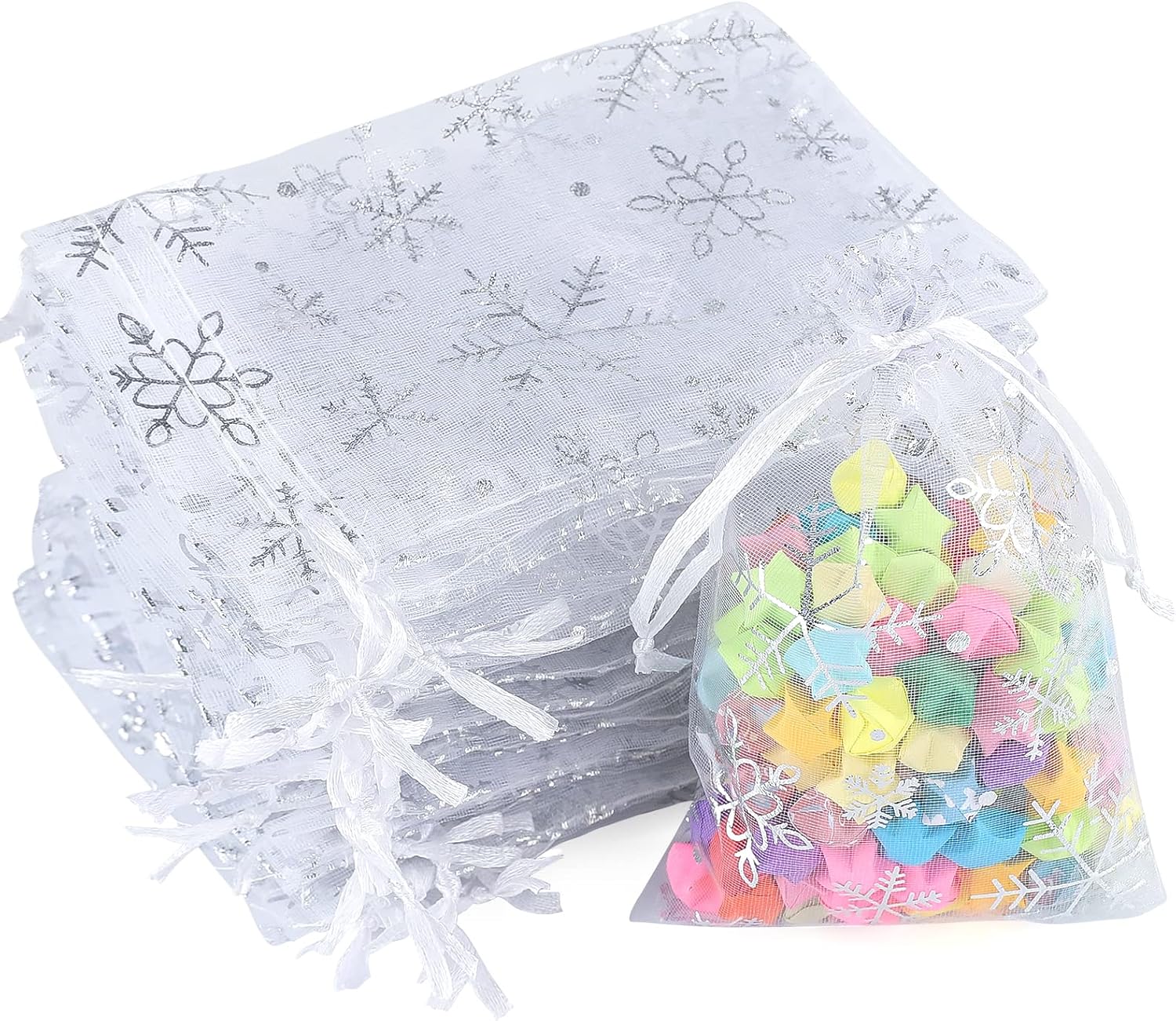 - 【Christmas Favors Bags】Sheer organza bags are printed with snowflake pattern, it is perfect to use this organza bags at Christmas, or any event, party in winter. In normal times you can also use these organza gift bags can elegantly wrap items such as wedding favors, soaps, rose petals, candles, perfume, beads and so on.