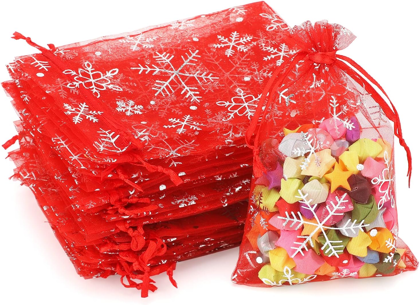 - 【Christmas Favors Bags】Sheer organza bags are printed with snowflake pattern, it is perfect to use this organza bags at Christmas, or any event, party in winter. In normal times you can also use these organza gift bags can elegantly wrap items such as wedding favors, soaps, rose petals, candles, perfume, beads and so on.