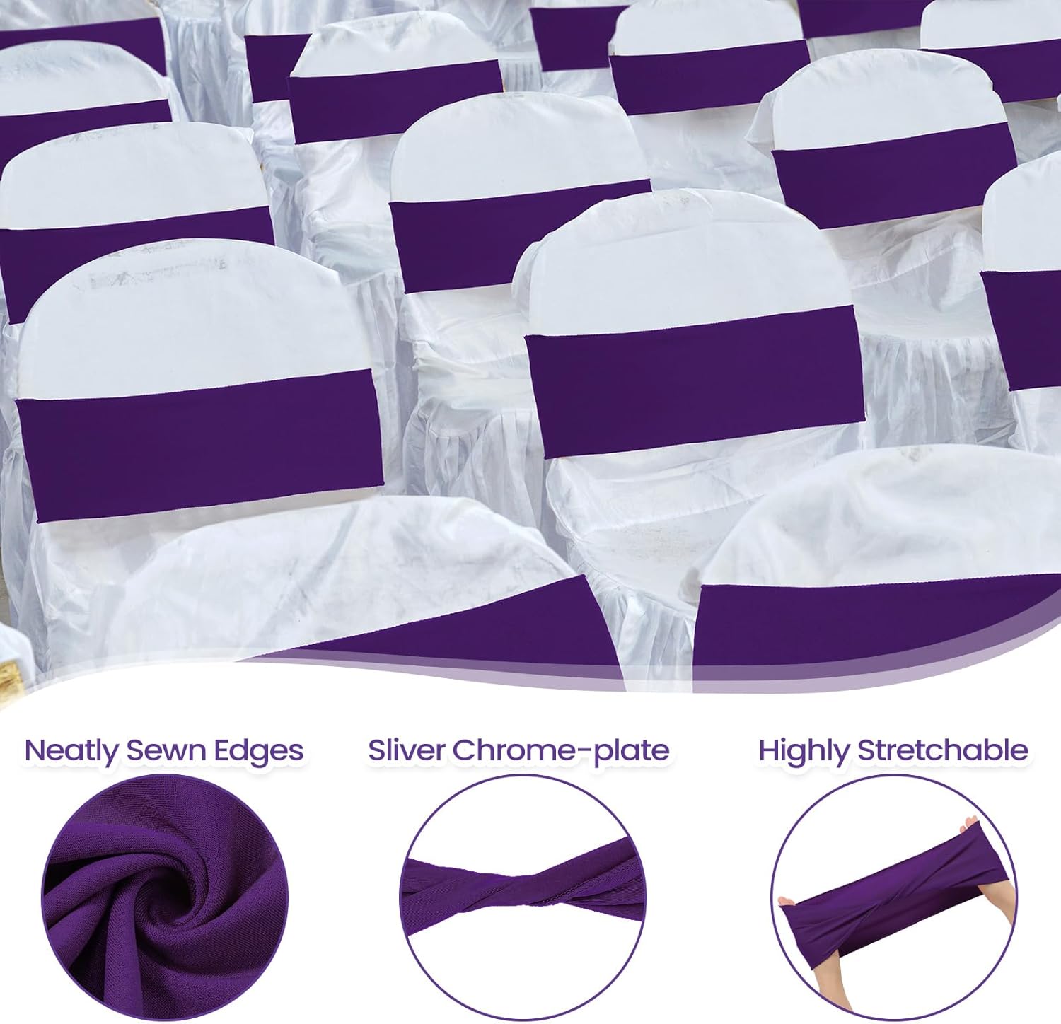 Kinlop 50 Pcs Spandex Chair Sashes Bows Chair Bands Slider Sashes for Covers Elastic Bands Ties Without Buckle Decorations for Wedding Party Events Ceremony Birthday(Purple)