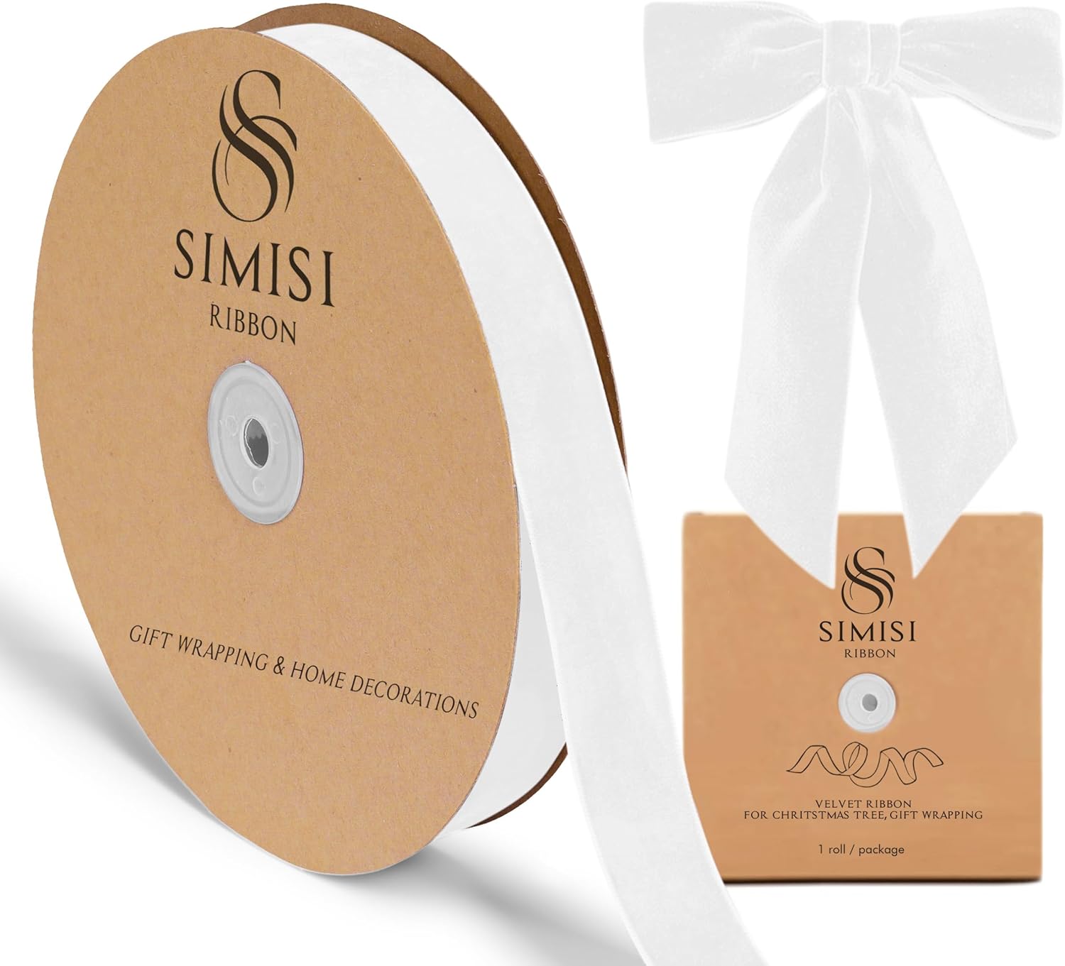 White Velvet Ribbon 1'' 25 Yards for Christmas Tree, Gift Wrapping, Flower Bouquet, Wreath Decorations, Bow Making