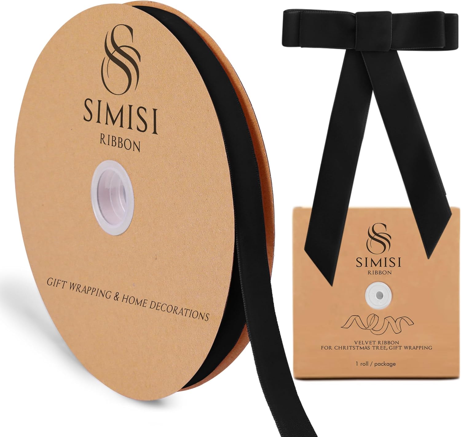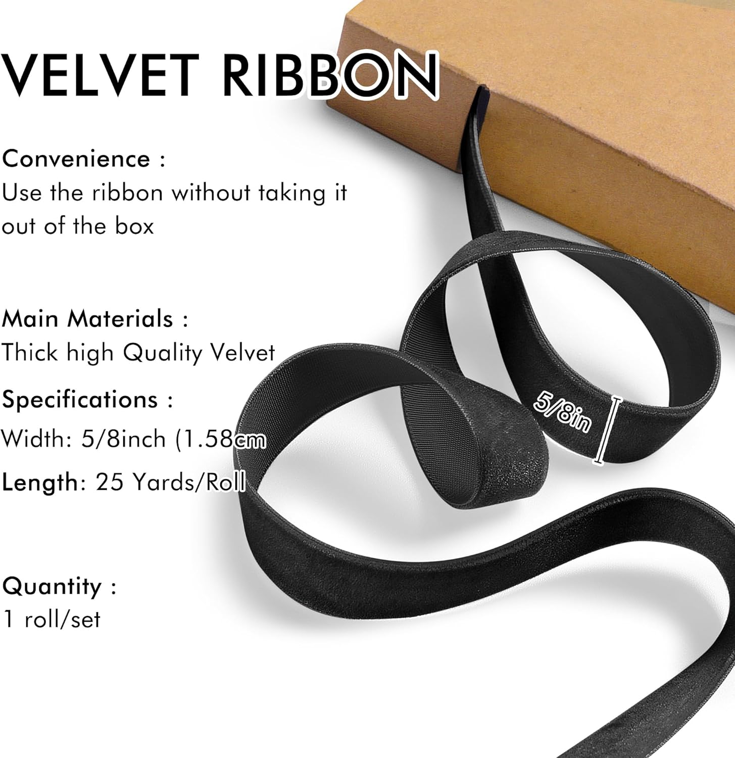 Black Velvet Ribbon 5/8'' 25 Yards for Christmas Tree, Gift Wrapping, Flower Bouquet, Wreath Decorations, Bow Making