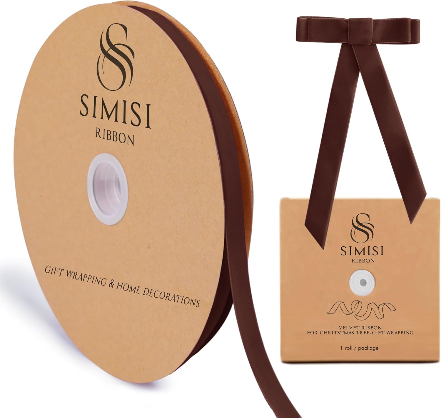 Brown Velvet Ribbon 3/8'' 25 Yards for Christmas Tree, Gift Wrapping, Flower Bouquet, Wreath Decorations, Bow Making